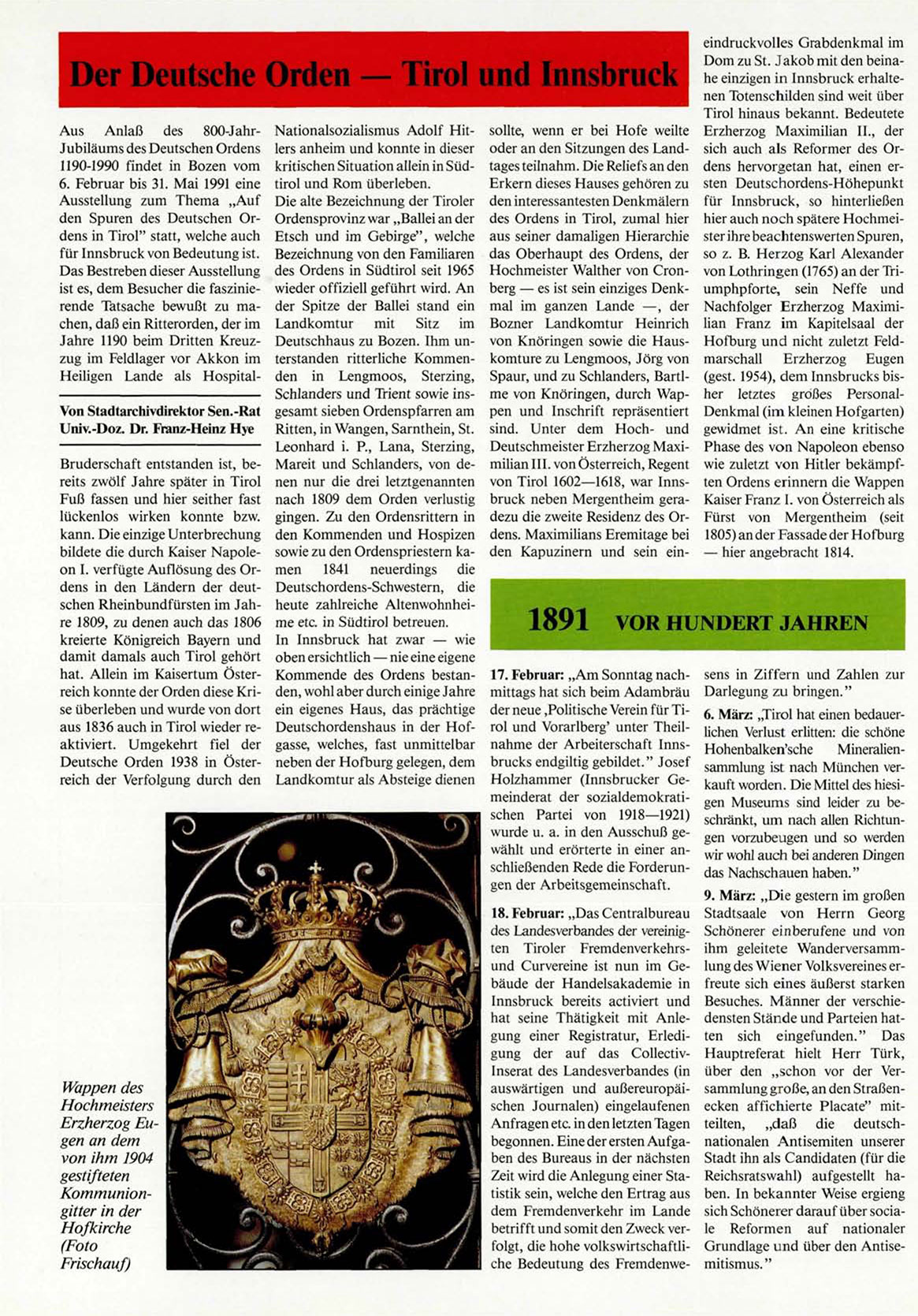 Aus Anlaß des 800-JahrJubiläums des Deutschen Ordens