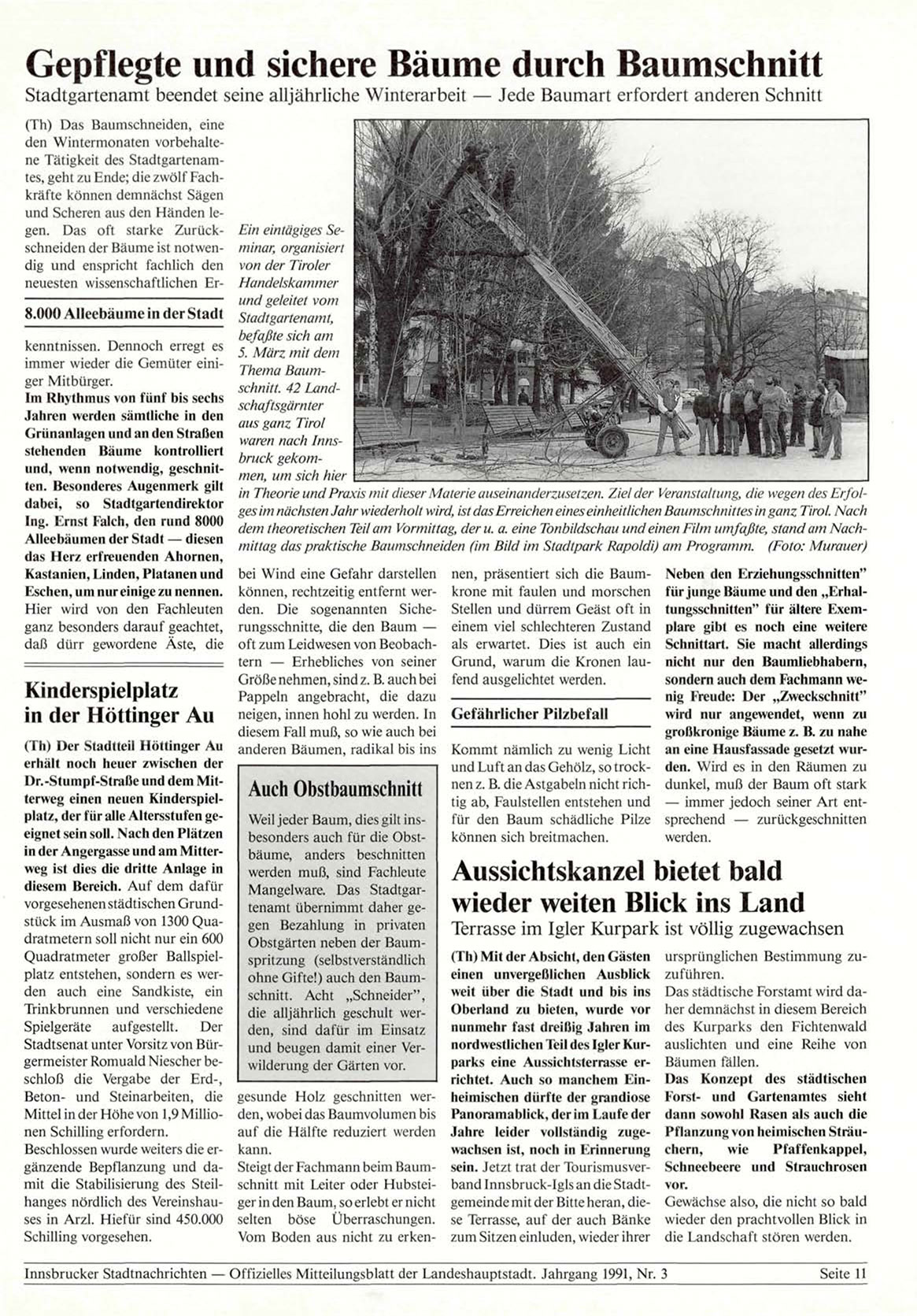 Innsbrucker Stadtnachrichten — Offizielles Mitteilungsblatt der Landeshauptstadt. Jahrgang 1991, Nr. 3