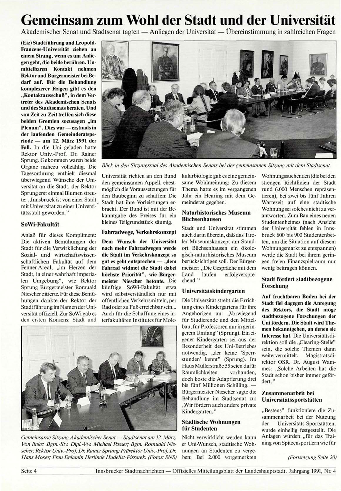 Innsbrucker Stadtnachrichten — Offizielles Mitteilungsblatt der Landeshauptstadt. Jahrgang 1991, Nr. 4