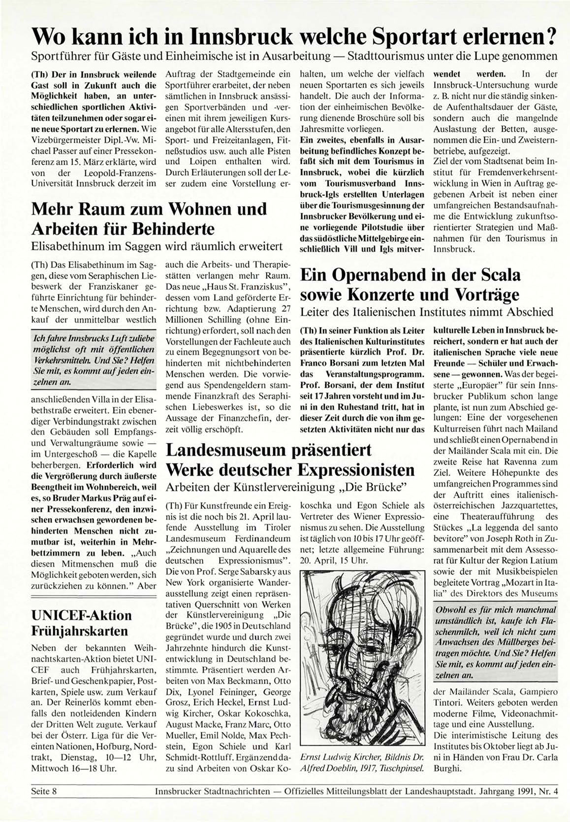 Innsbrucker Stadtnachrichten — Offizielles Mitteilungsblatt der Landeshauptstadt. Jahrgang 1991, Nr. 4