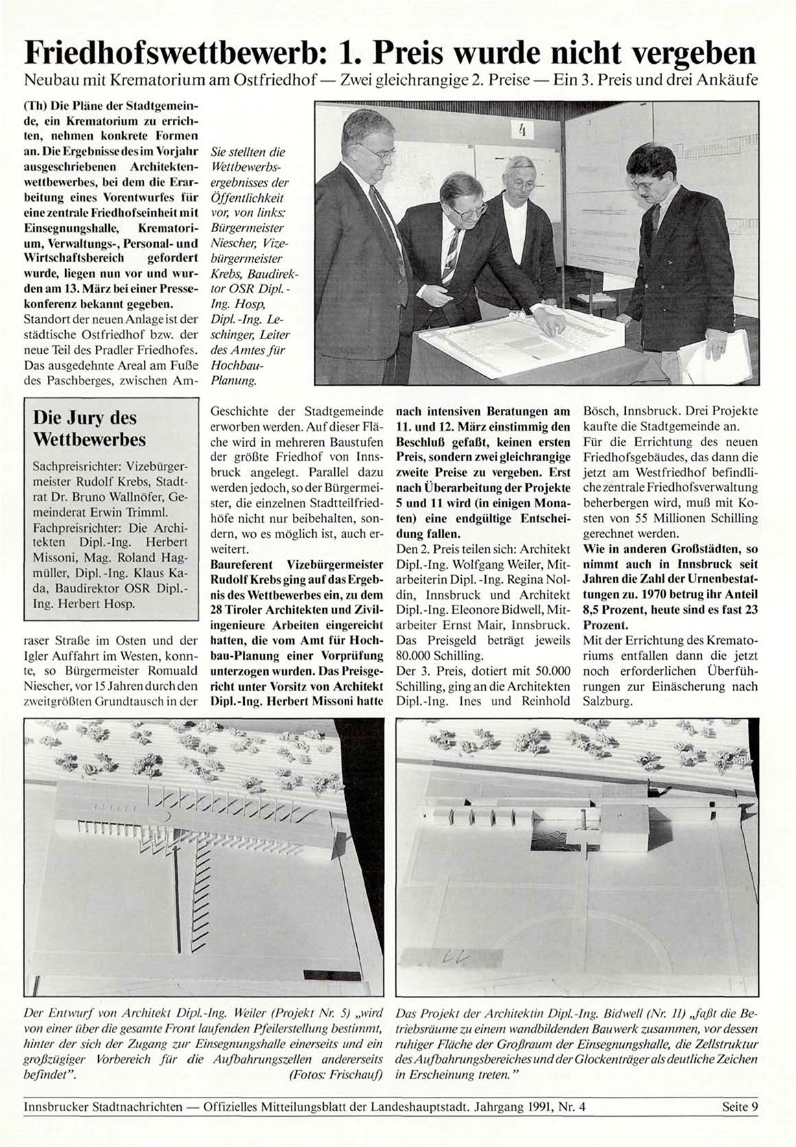 Innsbrucker Stadtnachrichten — Offizielles Mitteilungsblatt der Landeshauptstadt. Jahrgang 1991, Nr. 4