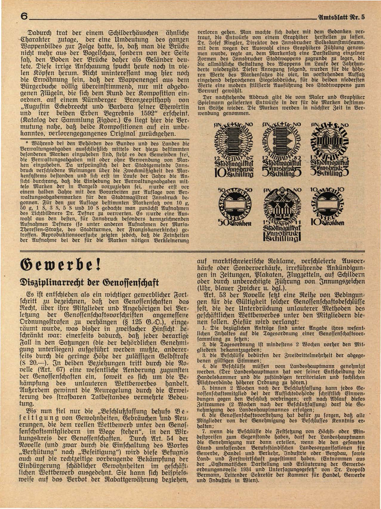 einem halben Jahre mit den Vorarbeiten zur Auflage von Verwaltungsabgabenmarken für den Stadtmagistrat Innsbruck begonnen. Für den zur Auflage bestimmten Markenfatz von 10 ß,