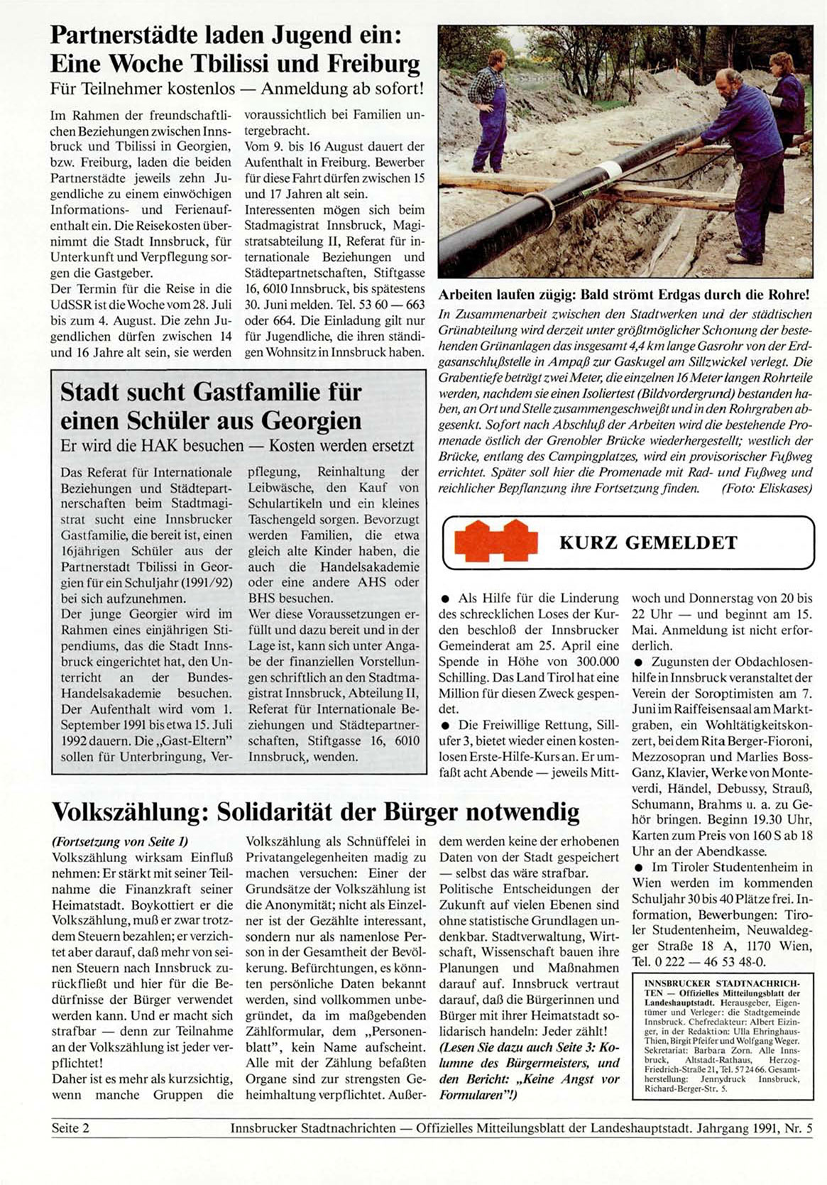 Innsbrucker Stadtnachrichten — Offizielles Mitteilungsblatt der Landeshauptstadt. Jahrgang 1991, Nr. 5