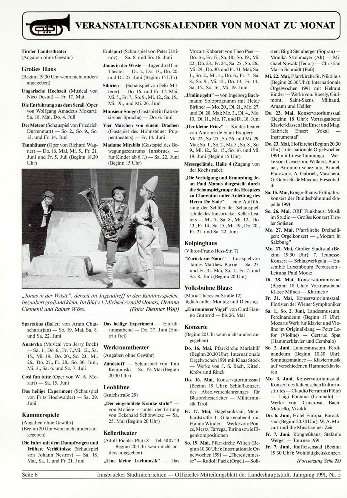 Innsbrucker Stadtnachrichten — Offizielles Mitteilungsblatt der Landeshauptstadt. Jahrgang 1991, Nr. 5