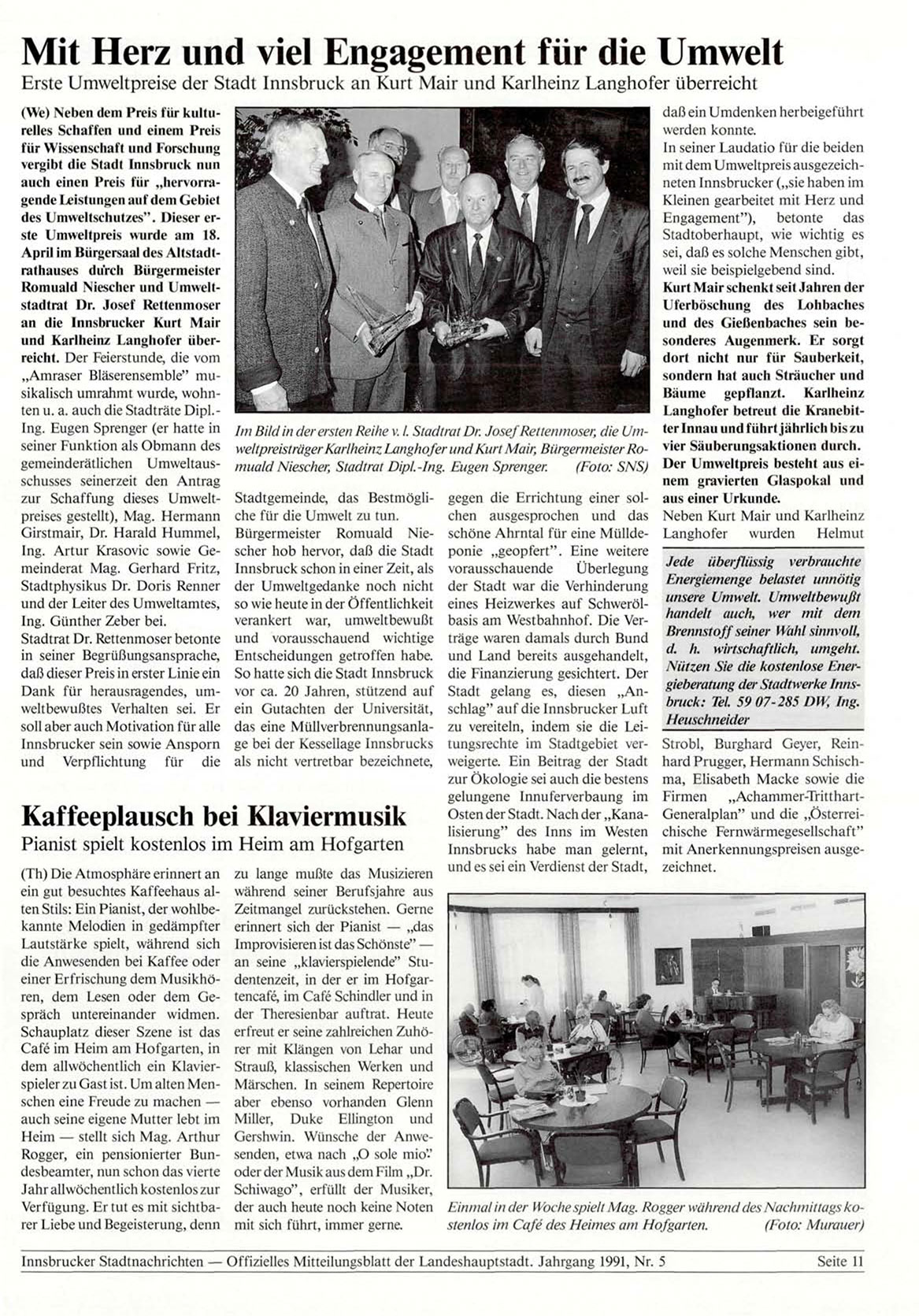 Innsbrucker Stadtnachrichten — Offizielles Mitteilungsblatt der Landeshauptstadt. Jahrgang 1991, Nr. 5