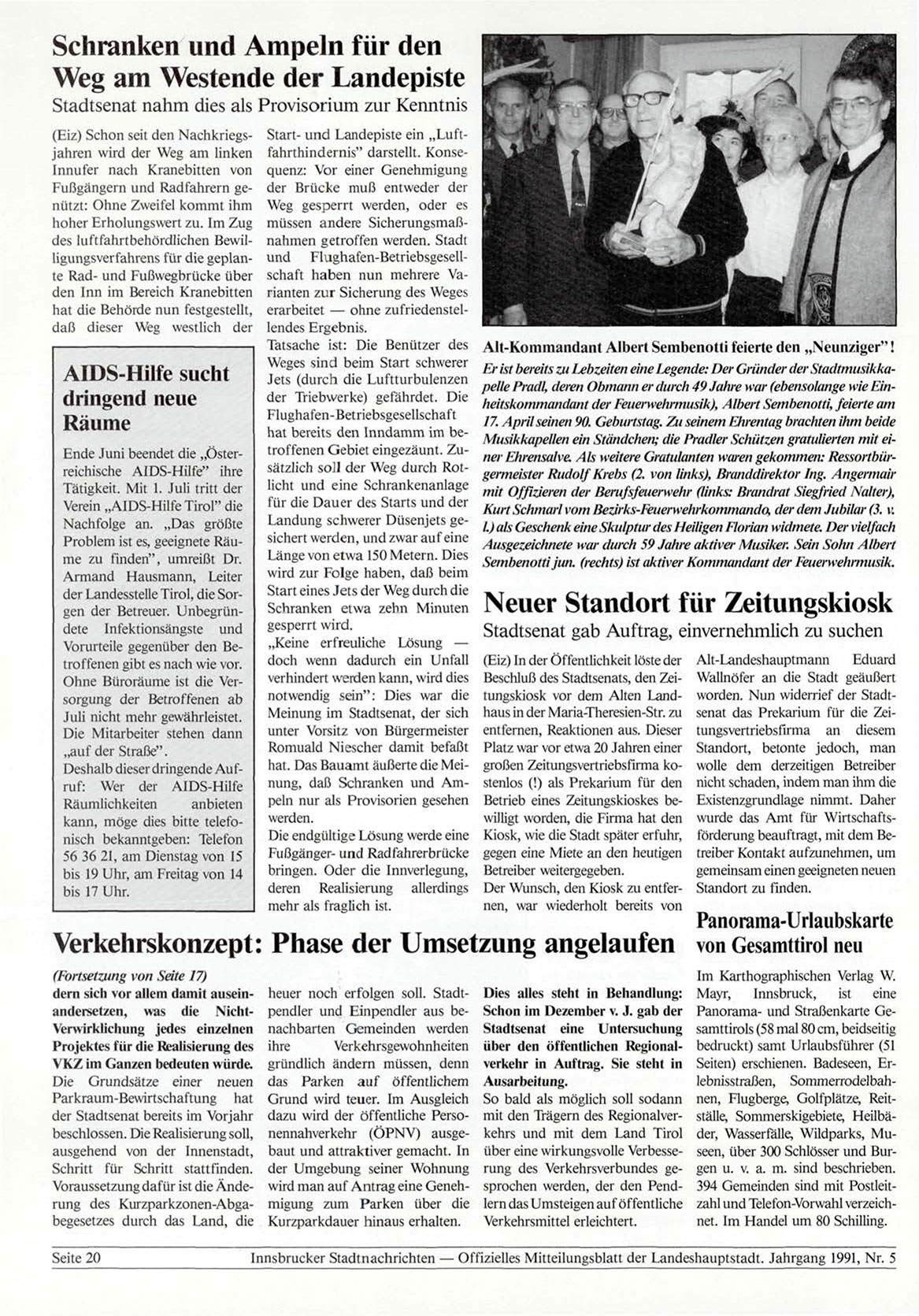 Innsbrucker Stadtnachrichten — Offizielles Mitteilungsblatt der Landeshauptstadt. Jahrgang 1991, Nr. 5