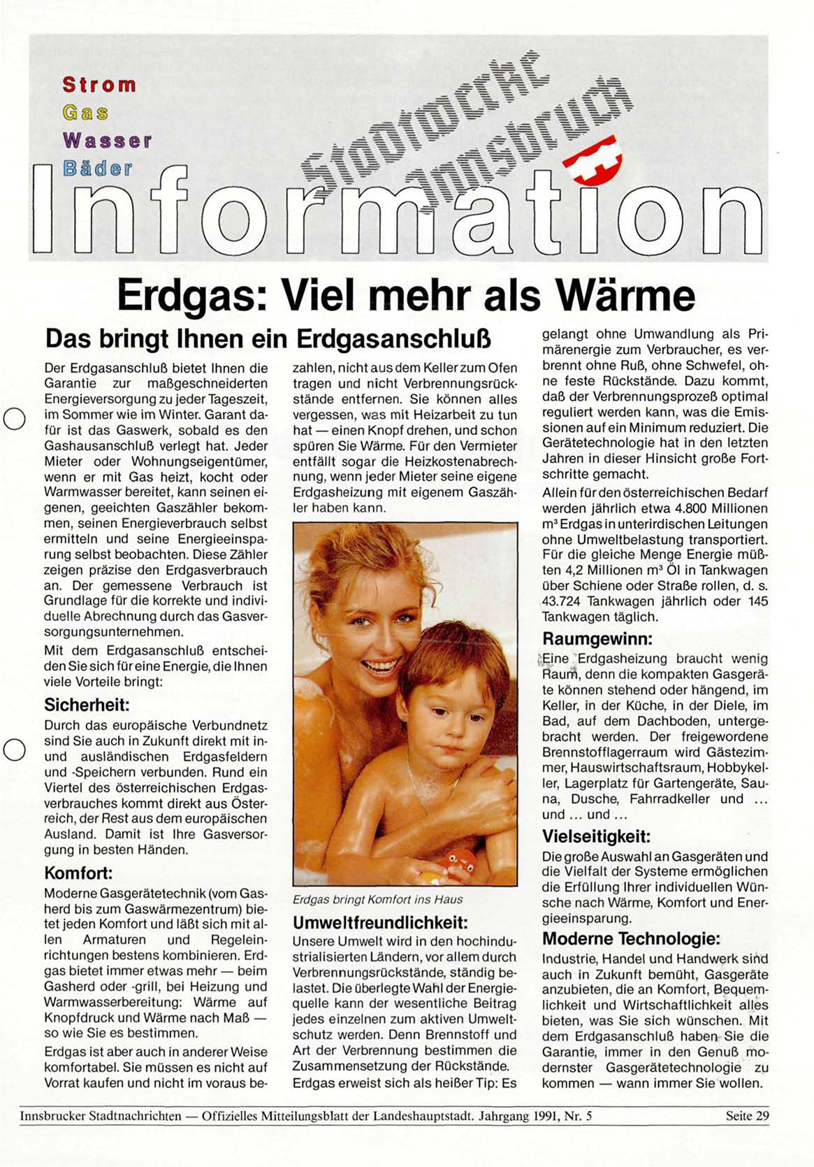 Innsbrucker Stadtnachrichten — Offizielles Mitteilungsblatt der Landeshauptstadt. Jahrgang 1991, Nr. 5