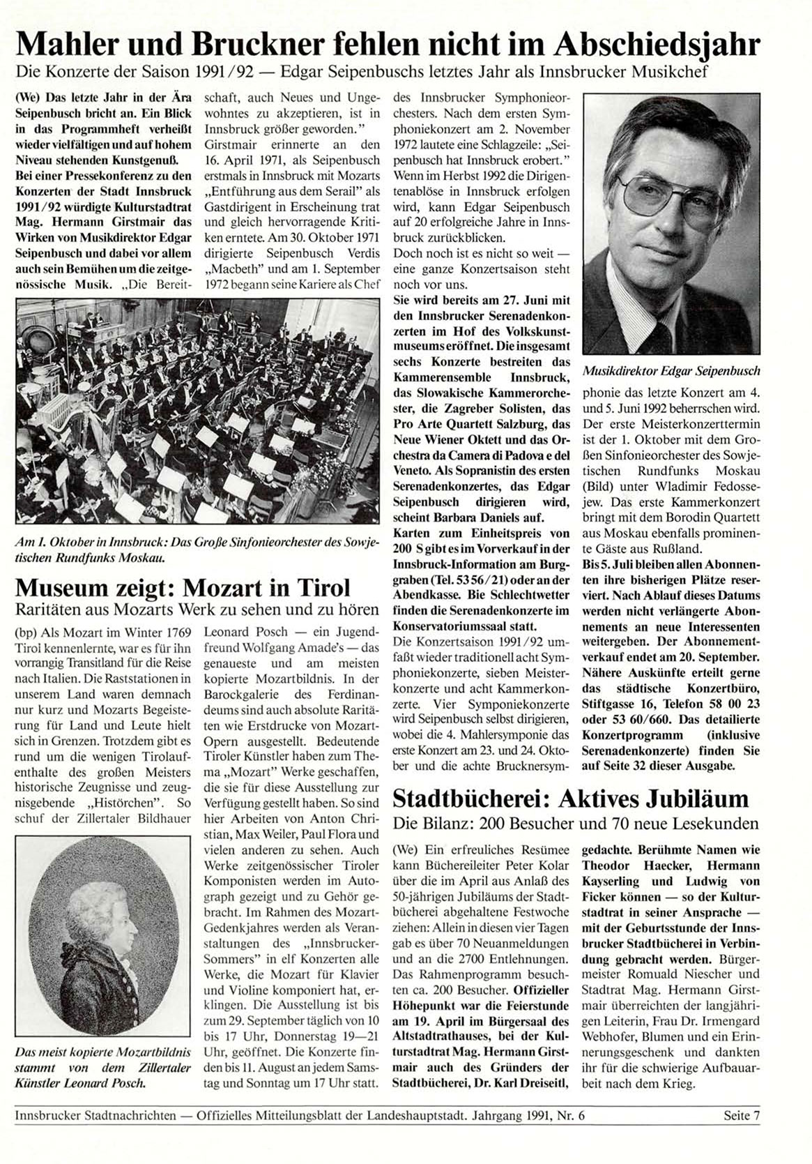 Die Konzerte der Saison 1991/92 — Edgar Seipenbuschs letztes Jahr als Innsbrucker Musikchef