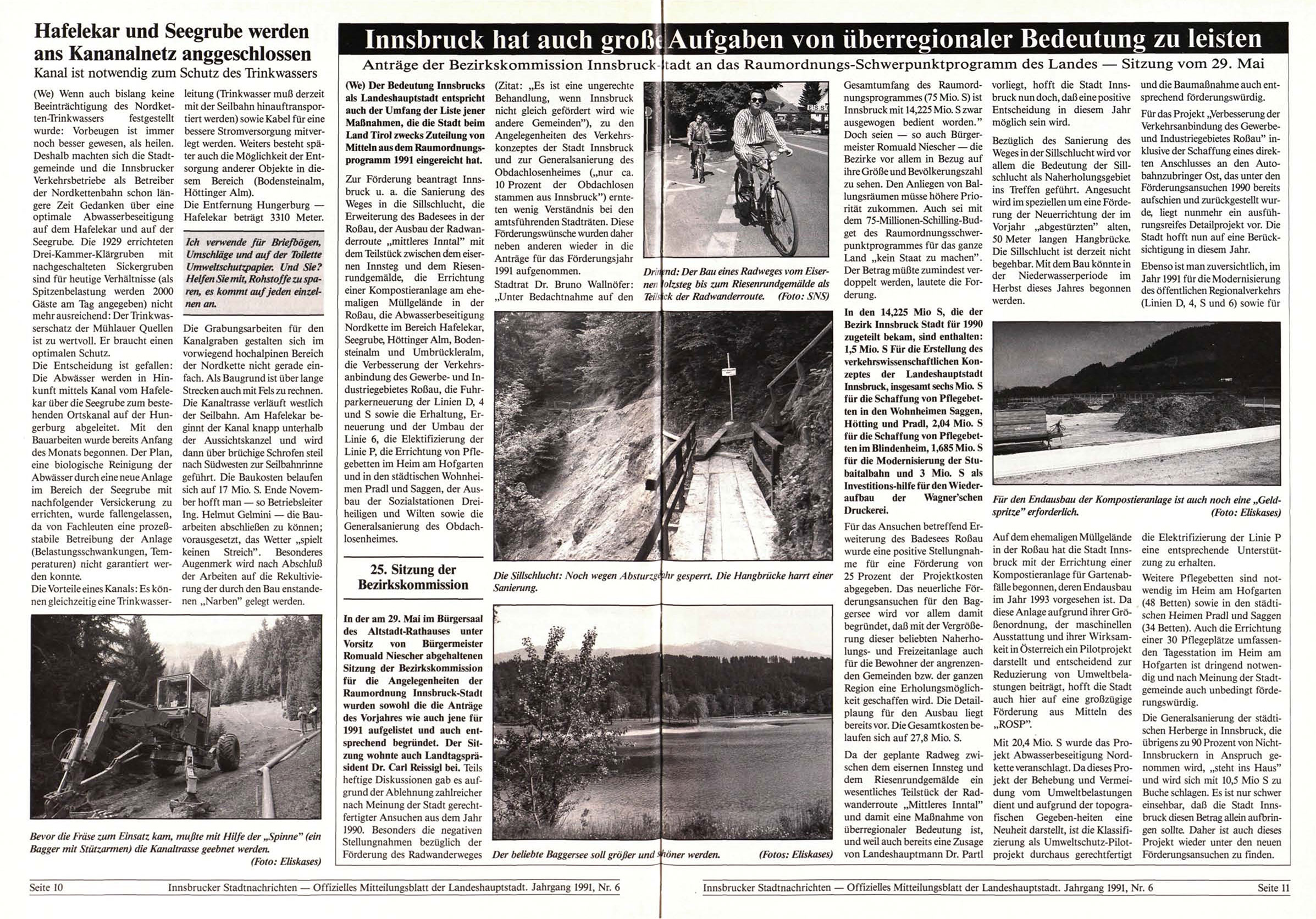 Innsbrucker Stadtnachrichten — Offizielles Mitteilungsblatt der Landeshauptstadt. Jahrgang 1991, Nr. 6
