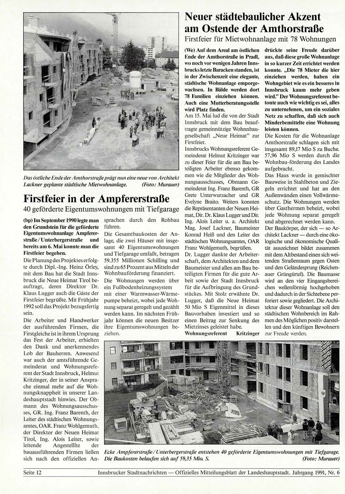 Innsbrucker Stadtnachrichten — Offizielles Mitteilungsblatt der Landeshauptstadt. Jahrgang 1991, Nr. 6