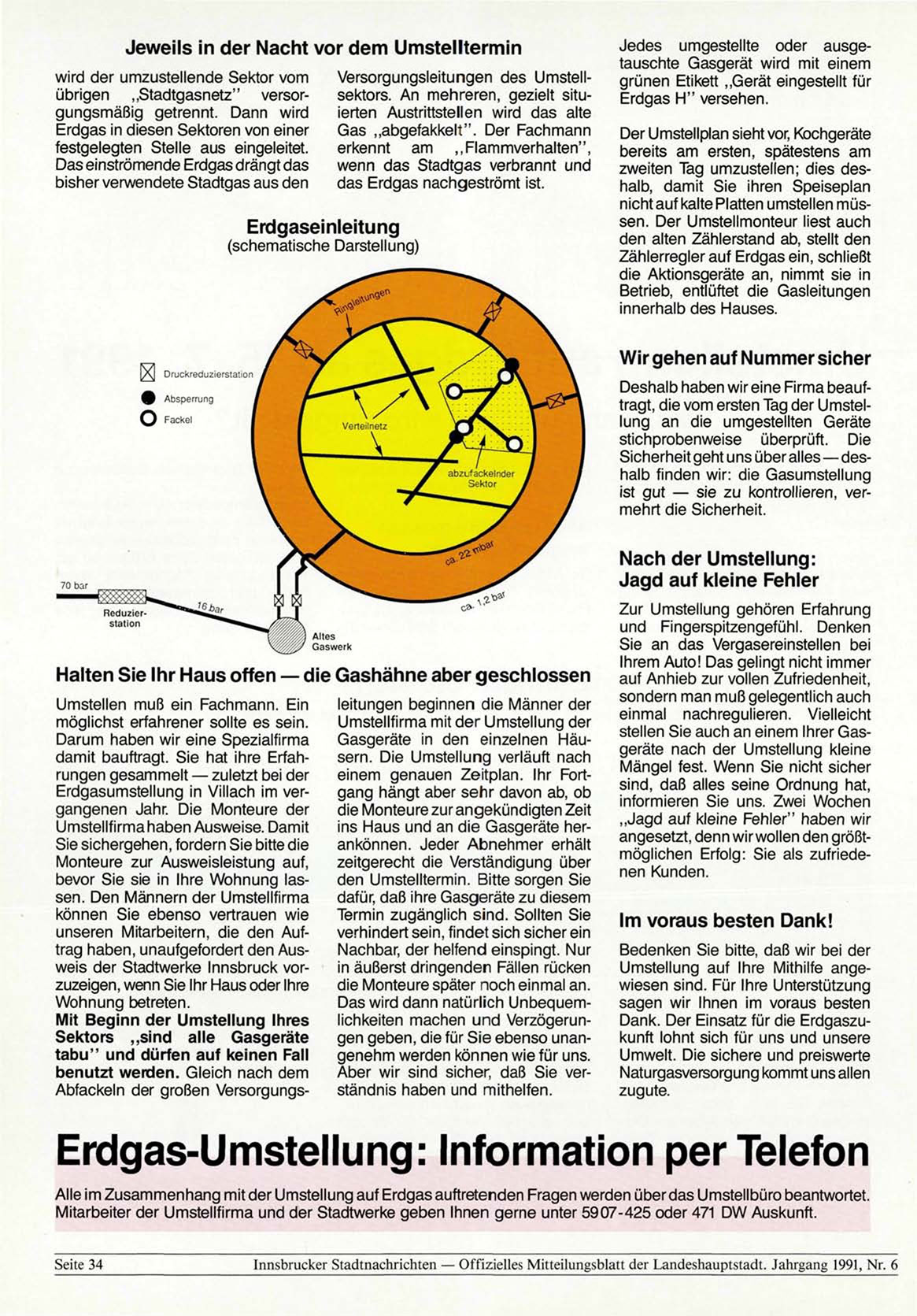Innsbrucker Stadtnachrichten — Offizielles Mitteilungsblatt der Landeshauptstadt. Jahrgang 1991, Nr. 6
