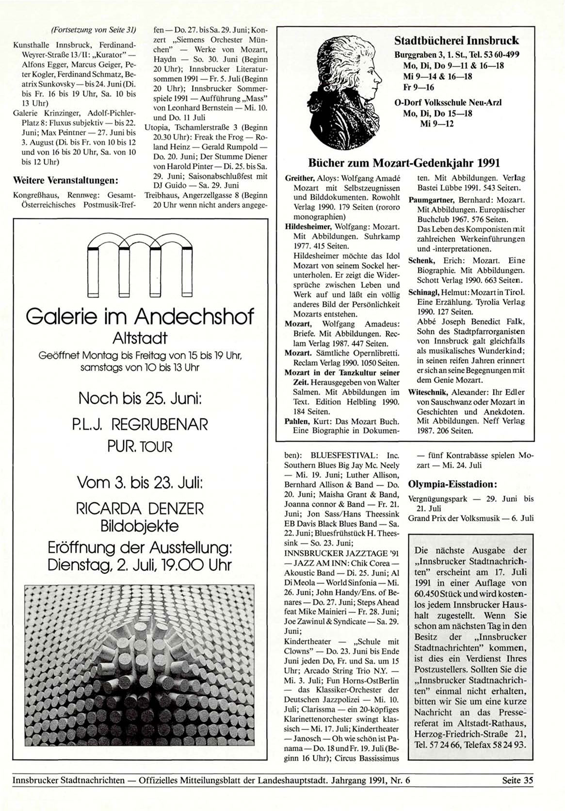 Innsbrucker Stadtnachrichten — Offizielles Mitteilungsblatt der Landeshauptstadt. Jahrgang 1991, Nr. 6