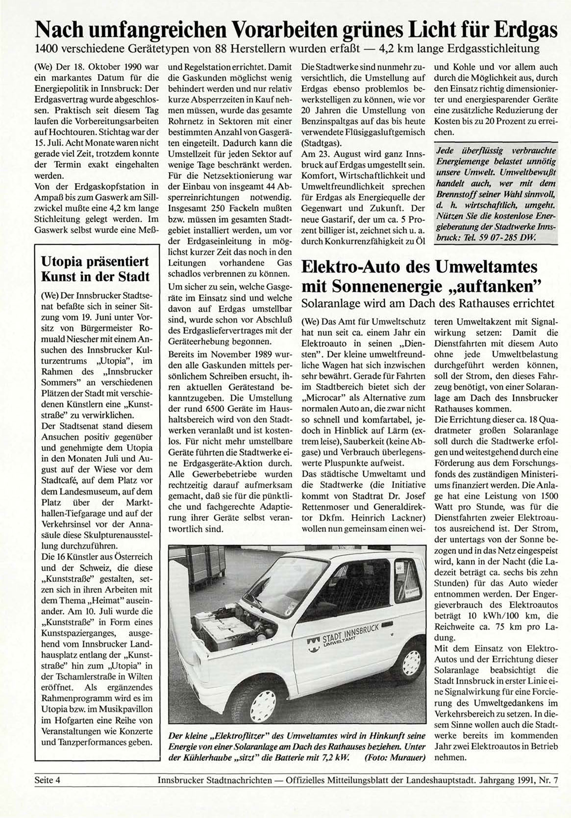 Innsbrucker Stadtnachrichten — Offizielles Mitteilungsblatt der Landeshauptstadt. Jahrgang 1991, Nr. 7