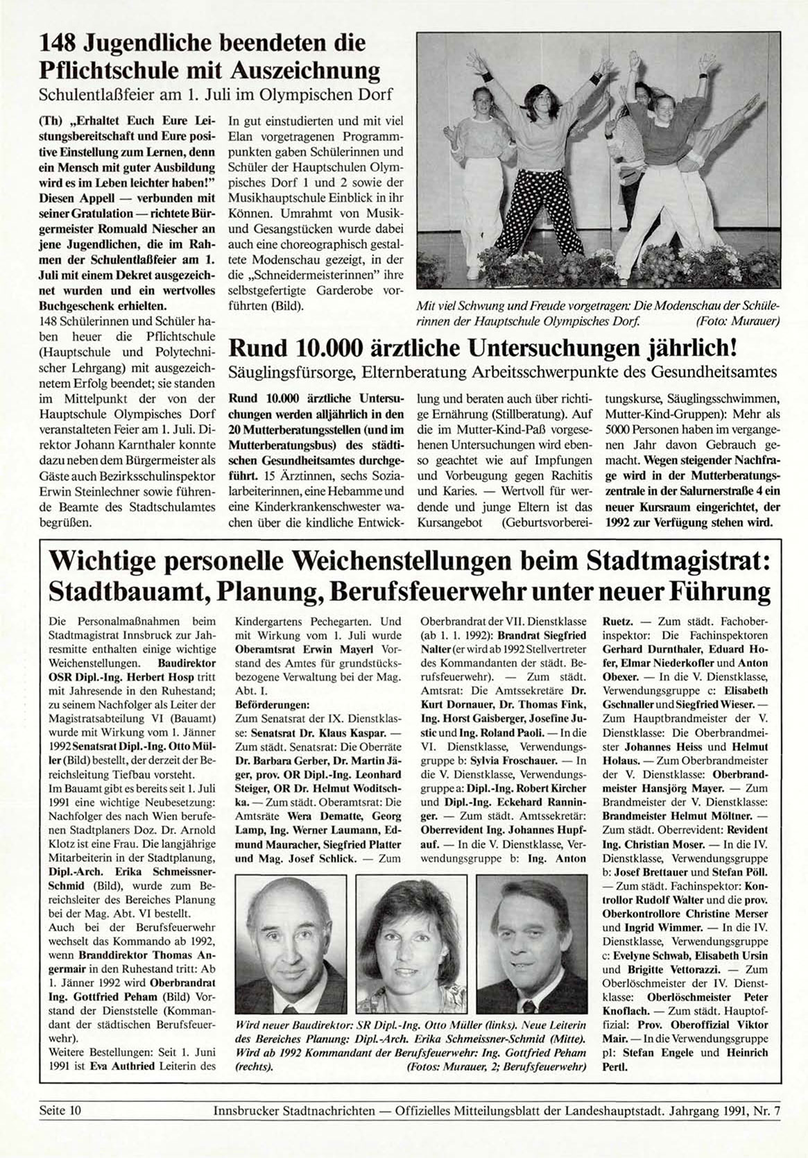 Innsbrucker Stadtnachrichten — Offizielles Mitteilungsblatt der Landeshauptstadt. Jahrgang 1991, Nr. 7