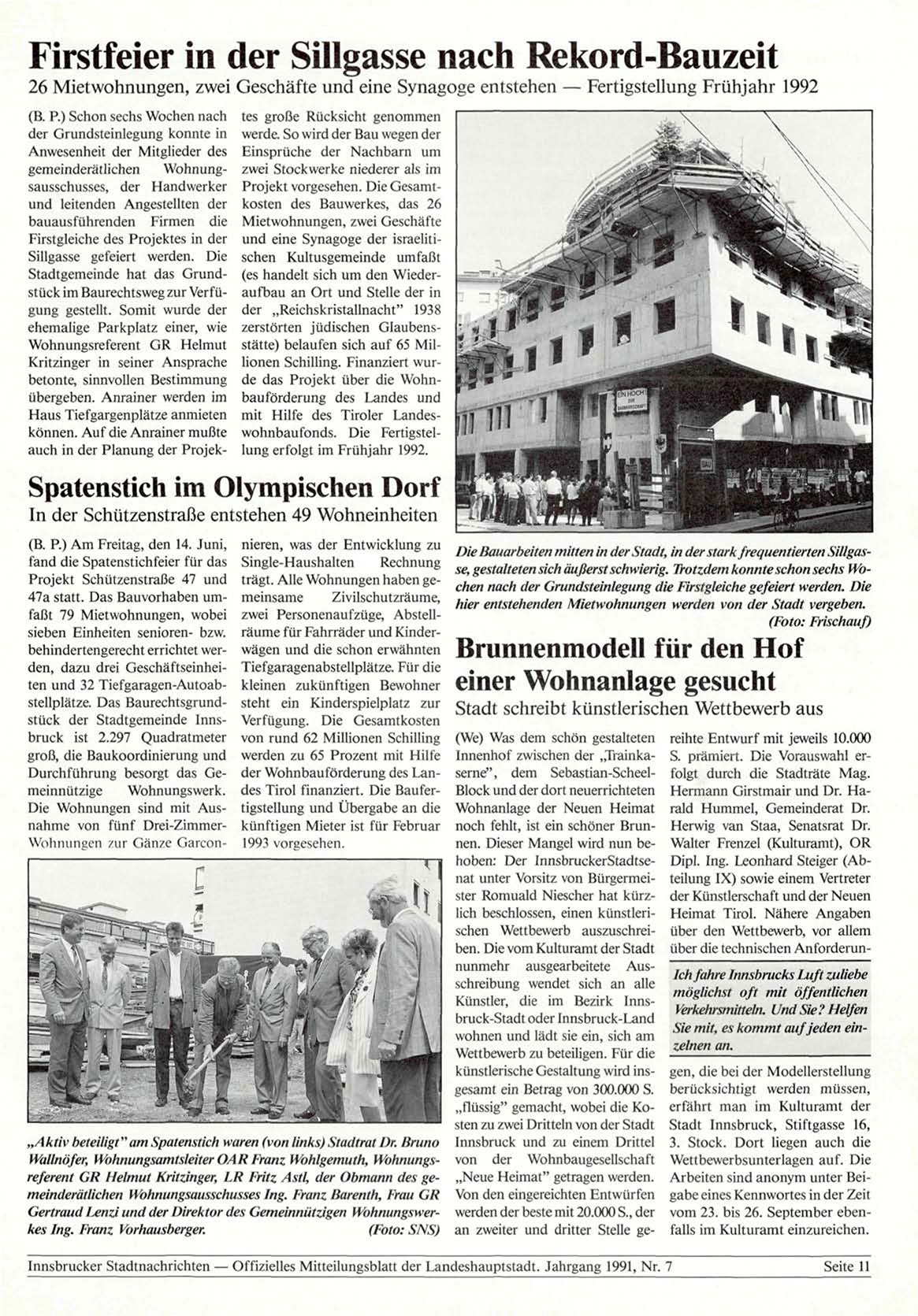 Innsbrucker Stadtnachrichten — Offizielles Mitteilungsblatt der Landeshauptstadt. Jahrgang 1991, Nr. 7