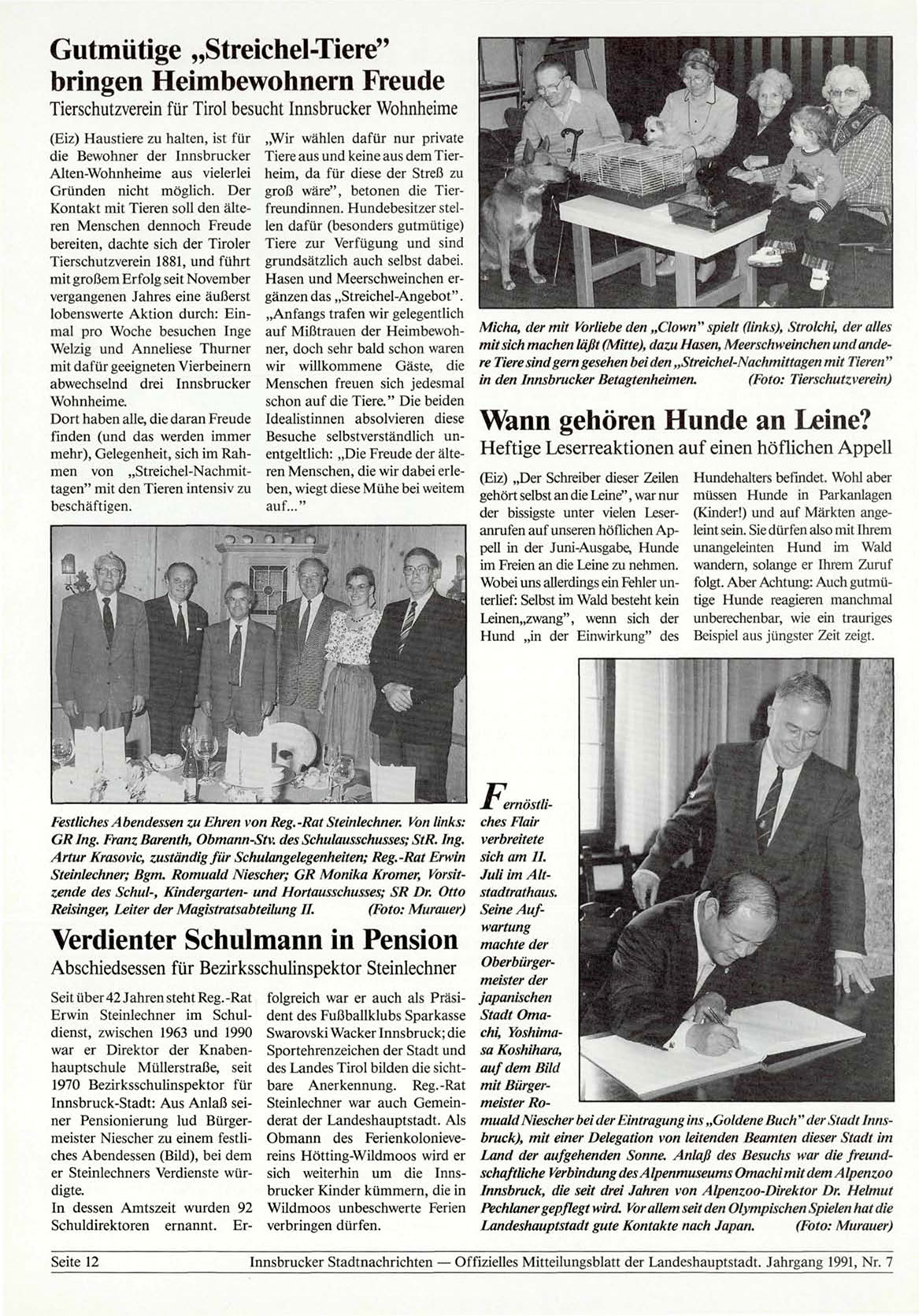 Innsbrucker Stadtnachrichten — Offizielles Mitteilungsblatt der Landeshauptstadt. Jahrgang 1991, Nr. 7