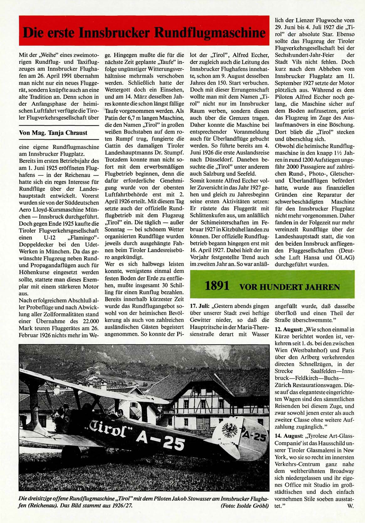 Mit der „Weihe" eines zweimotorigen Rundflug- und Taxiflugzeuges am Innsbrucker Flughafen am 26. April 1991 übernahm