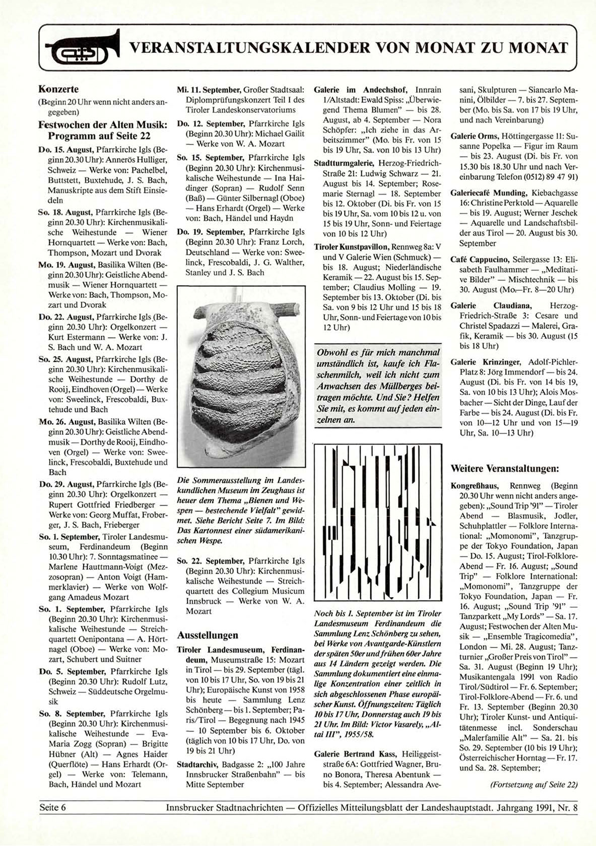 Innsbrucker Stadtnachrichten — Offizielles Mitteilungsblatt der Landeshauptstadt. Jahrgang 1991, Nr. 8