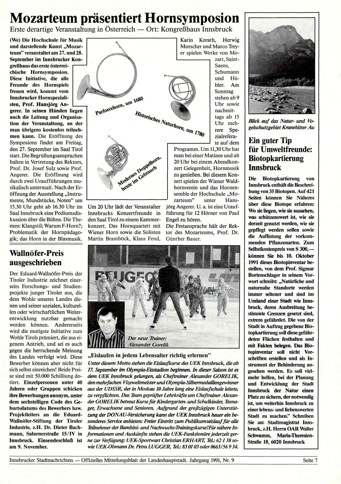 Innsbrucker Stadtnachrichten — Offizielles Mitteilungsblatt der Landeshauptstadt. Jahrgang 1991, Nr. 9