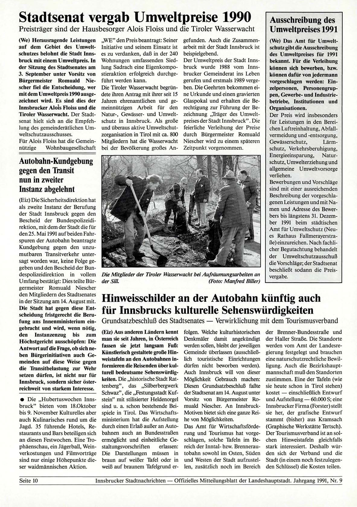 Innsbrucker Stadtnachrichten — Offizielles Mitteilungsblatt der Landeshauptstadt. Jahrgang 1991, Nr. 9