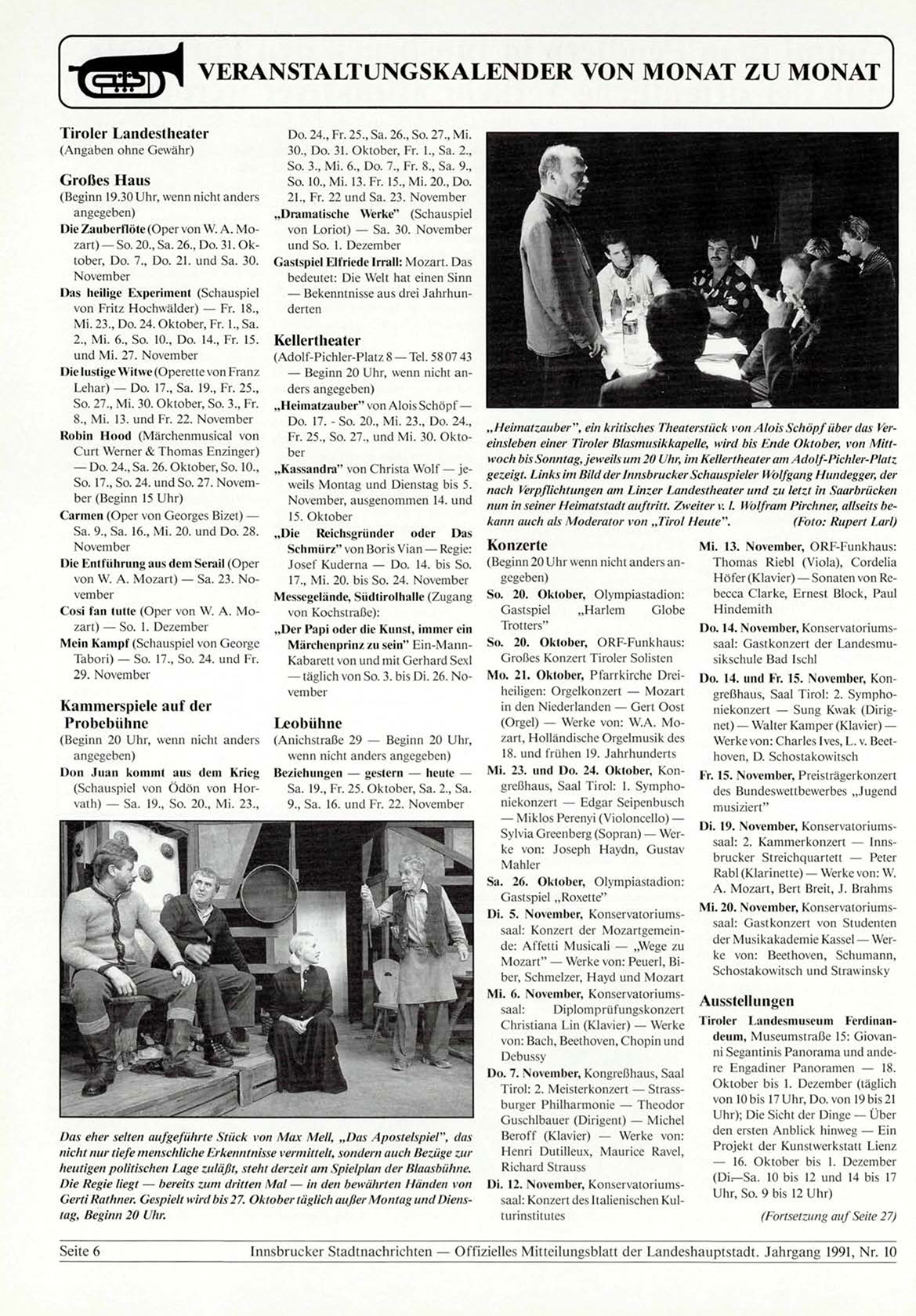 Innsbrucker Stadtnachrichten — Offizielles Mitteilungsblatt der Landeshauptstadt. Jahrgang 1991, Nr. 10