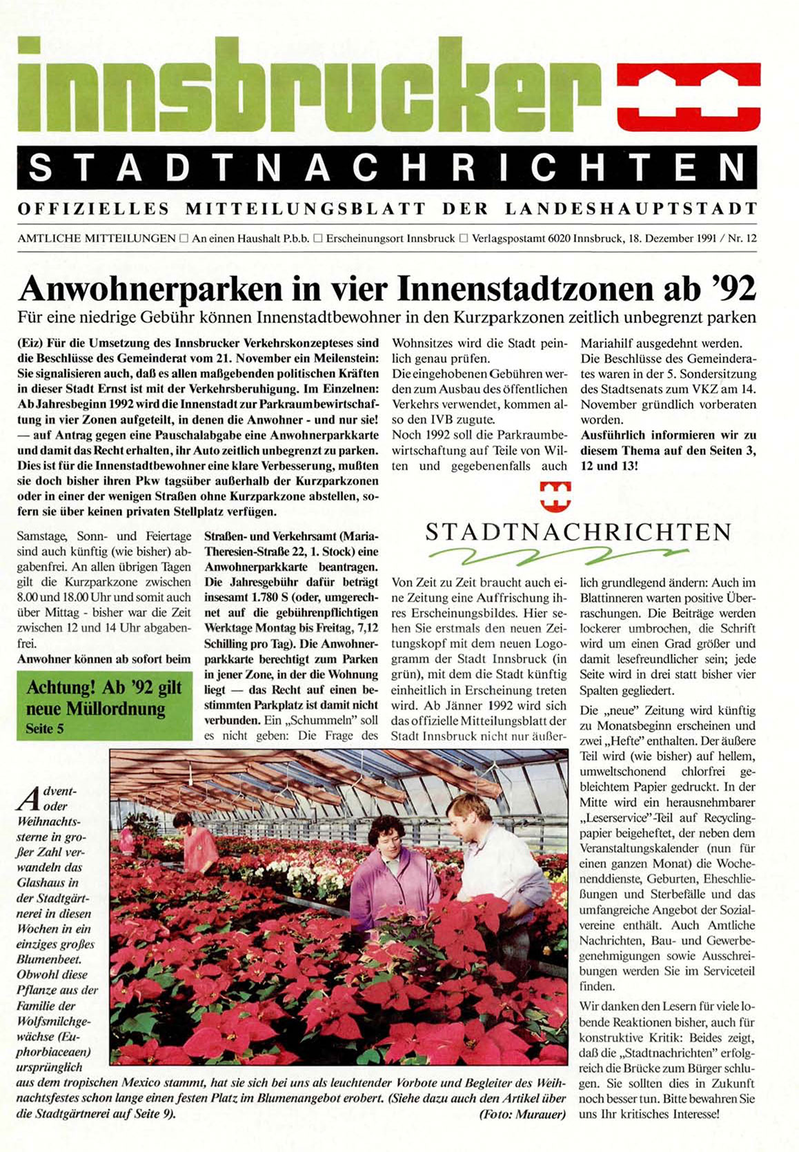 AMTLICHE MITTEILUNGEN D An einen Haushalt P.b.b. • Erscheinungsort Innsbruck D Verlagspostamt 6020 Innsbruck, 18. Dezember 1991 / Nr. 12