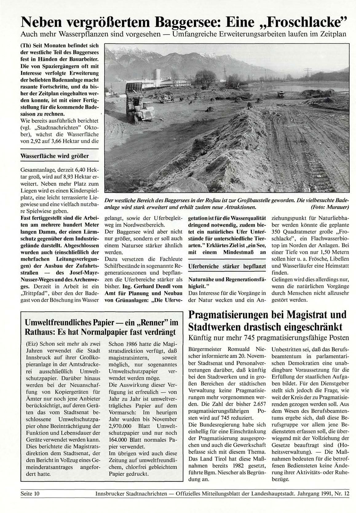 Innsbrucker Stadtnachrichten — Offizielles Mitteilungsblatt der Landeshauptstadt. Jahrgang 1991, Nr. 12