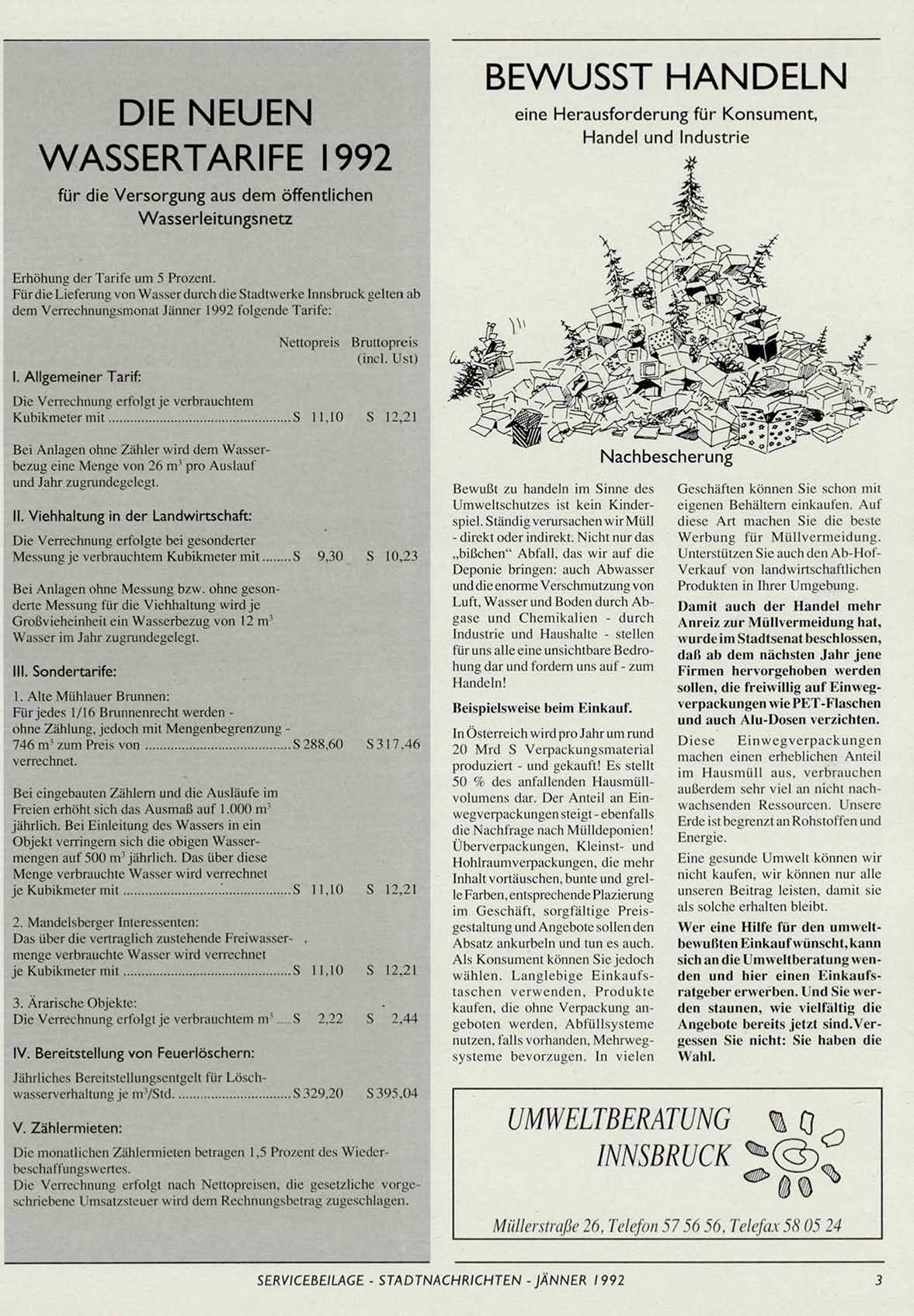SERVICEBEILAGE - STADTNACHRICHTEN -JANNER 1992
