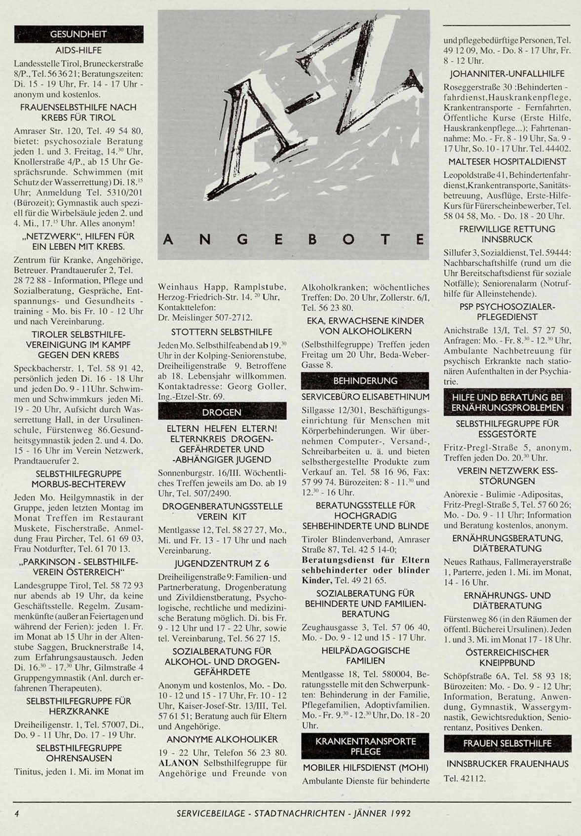 SERVICEBEILAGE-STADTNACHRICHTEN-JÄNNER 1992