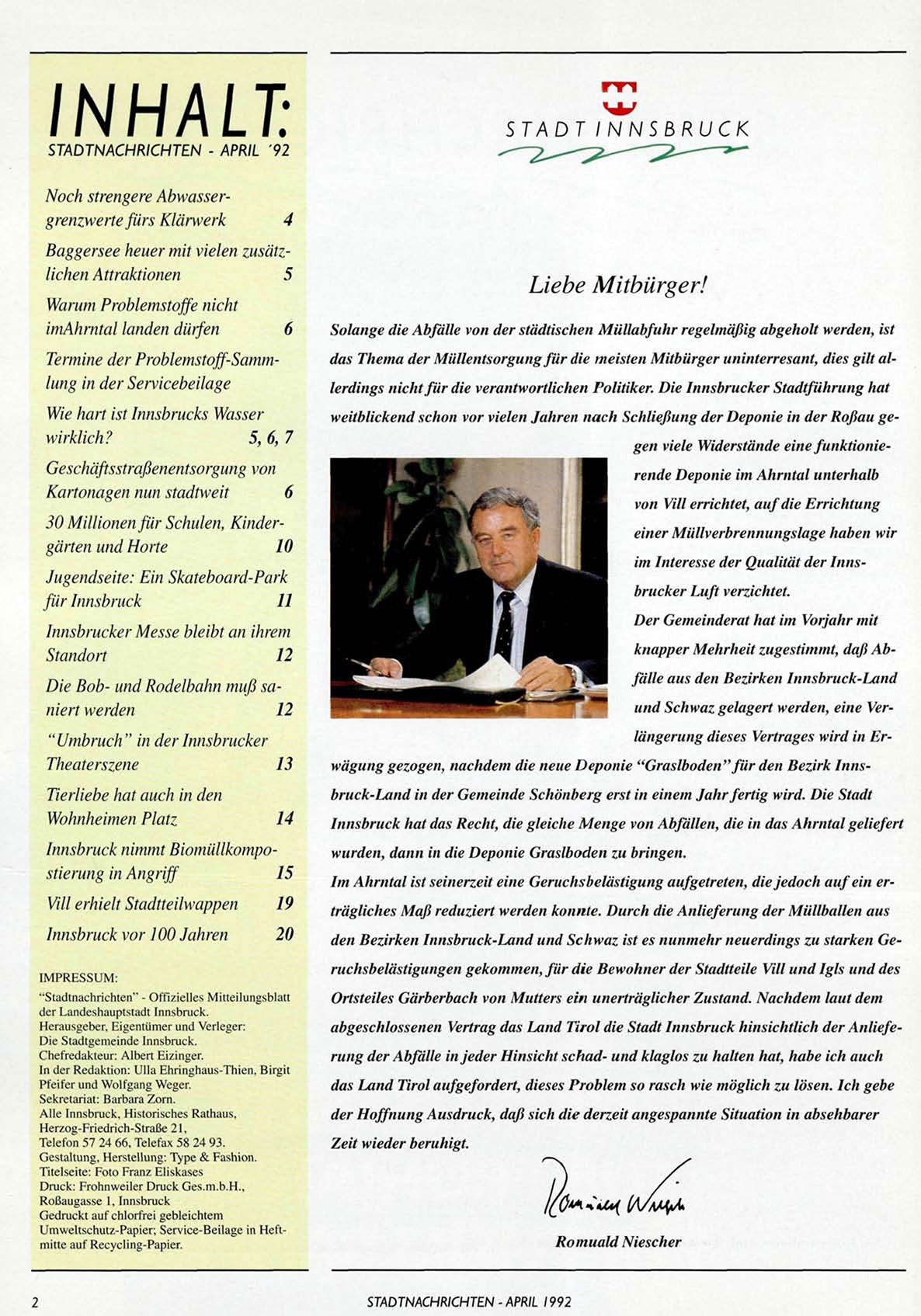 abgeschlossenen Vertrag das Land Tirol die Stadt Innsbruck hinsichtlich der Anlieferung der Abfälle in jeder Hinsicht schad- und klaglos zu halten hat, habe ich auch