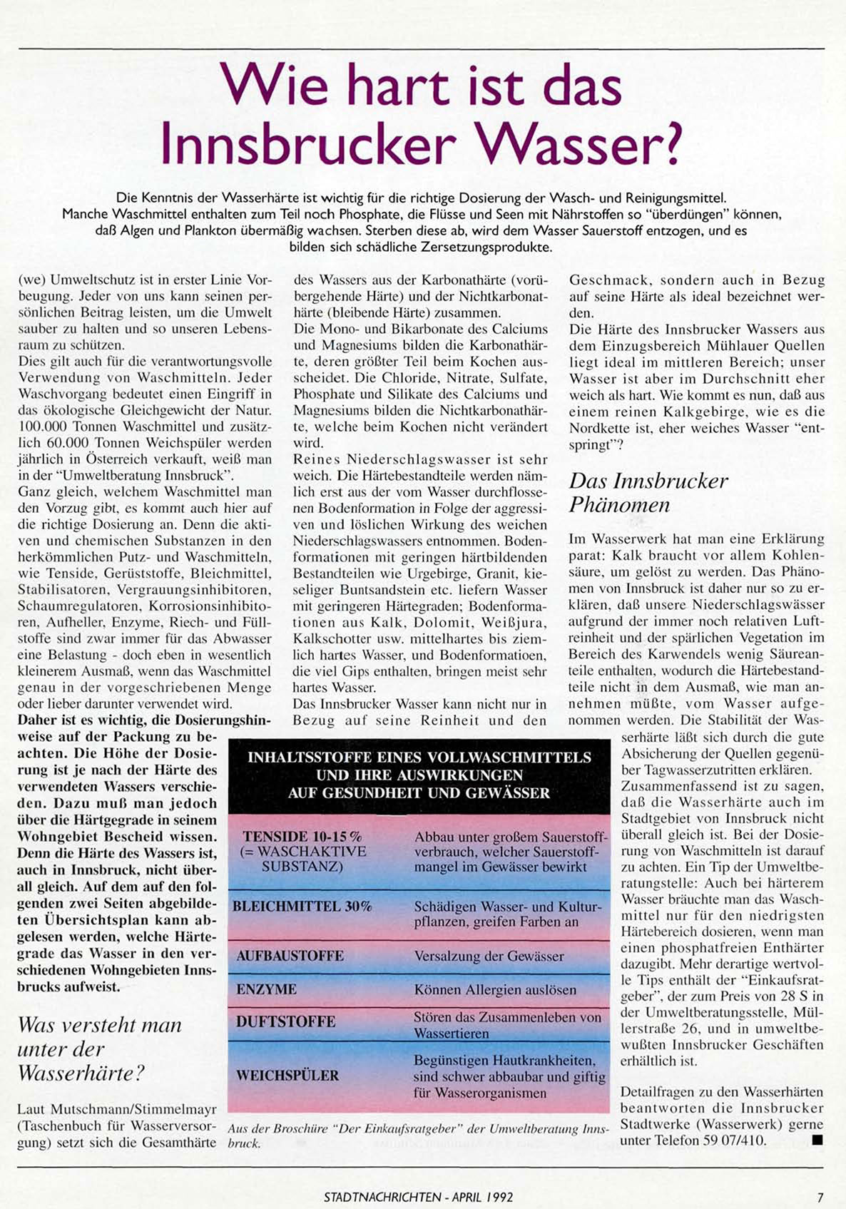 weich. Die Härtebestandteile werden nämin der "Umweltberatung Innsbruck".