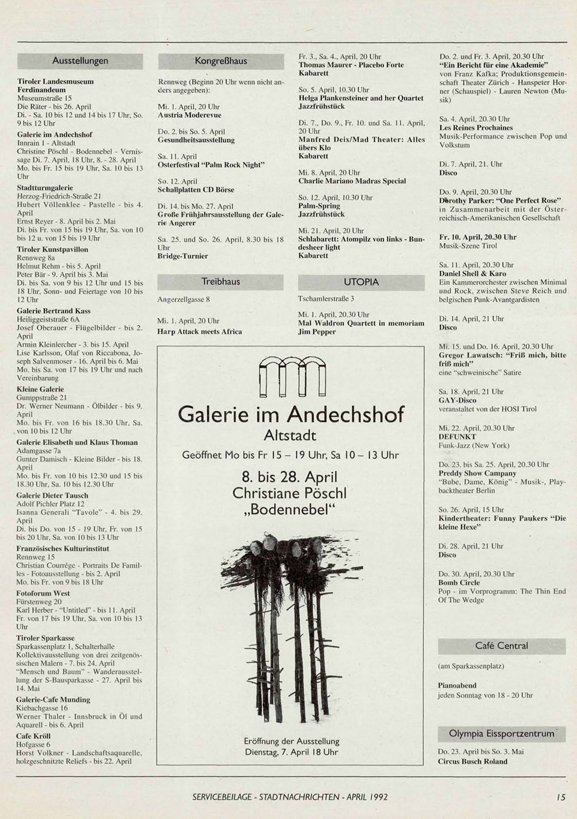 Fr. 3., Sa. 4„ April, 20 Uhr