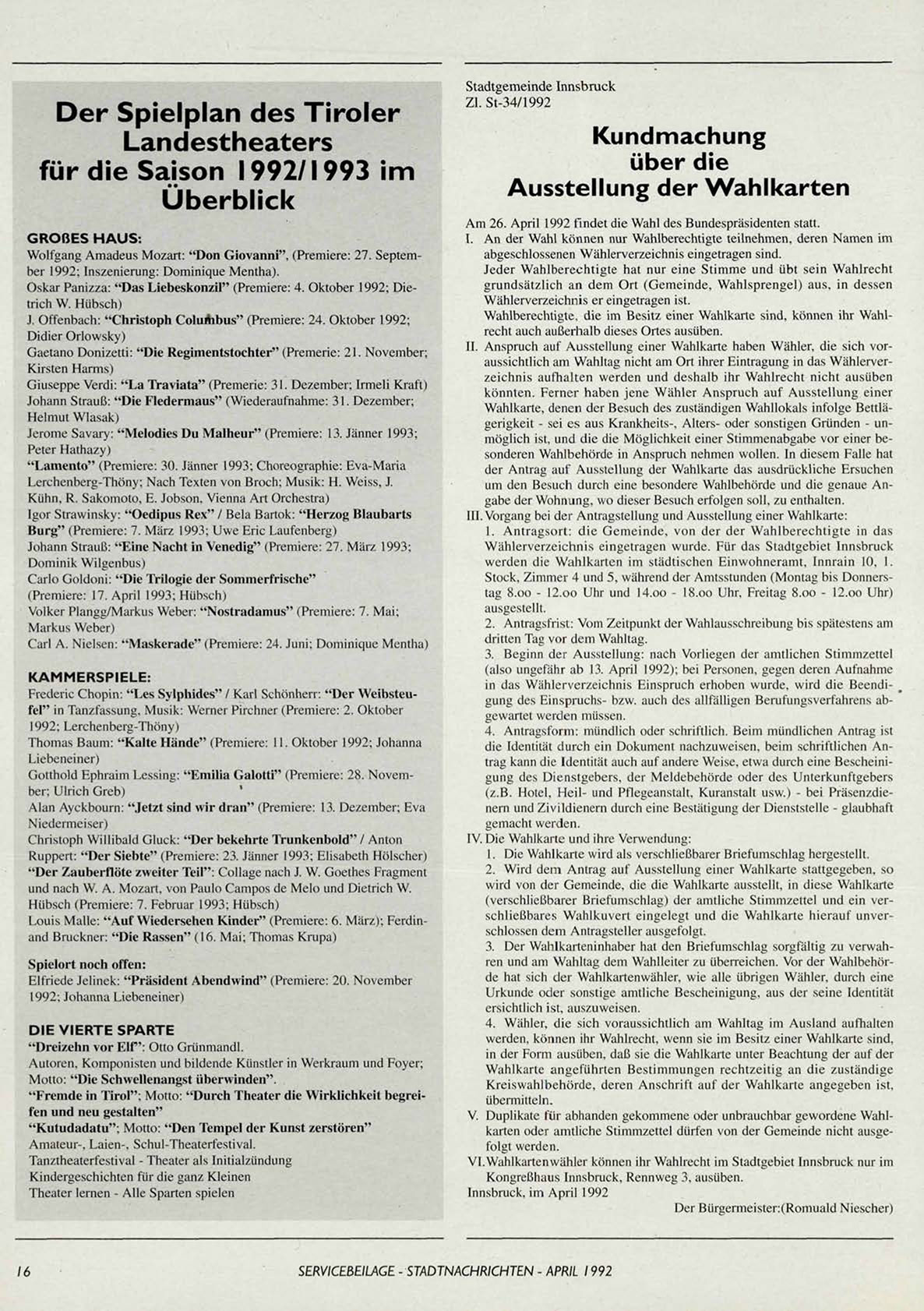 SERVICEBEILAGE - STADTNACHRICHTEN - APRIL 1992