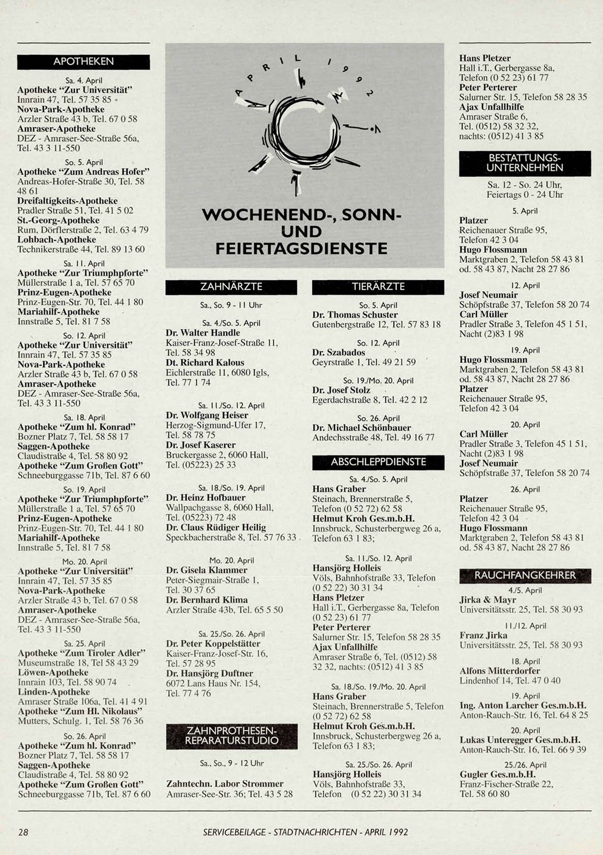 SERVICEBEILAGE - STADTNACHRICHTEN - APRIL 1992