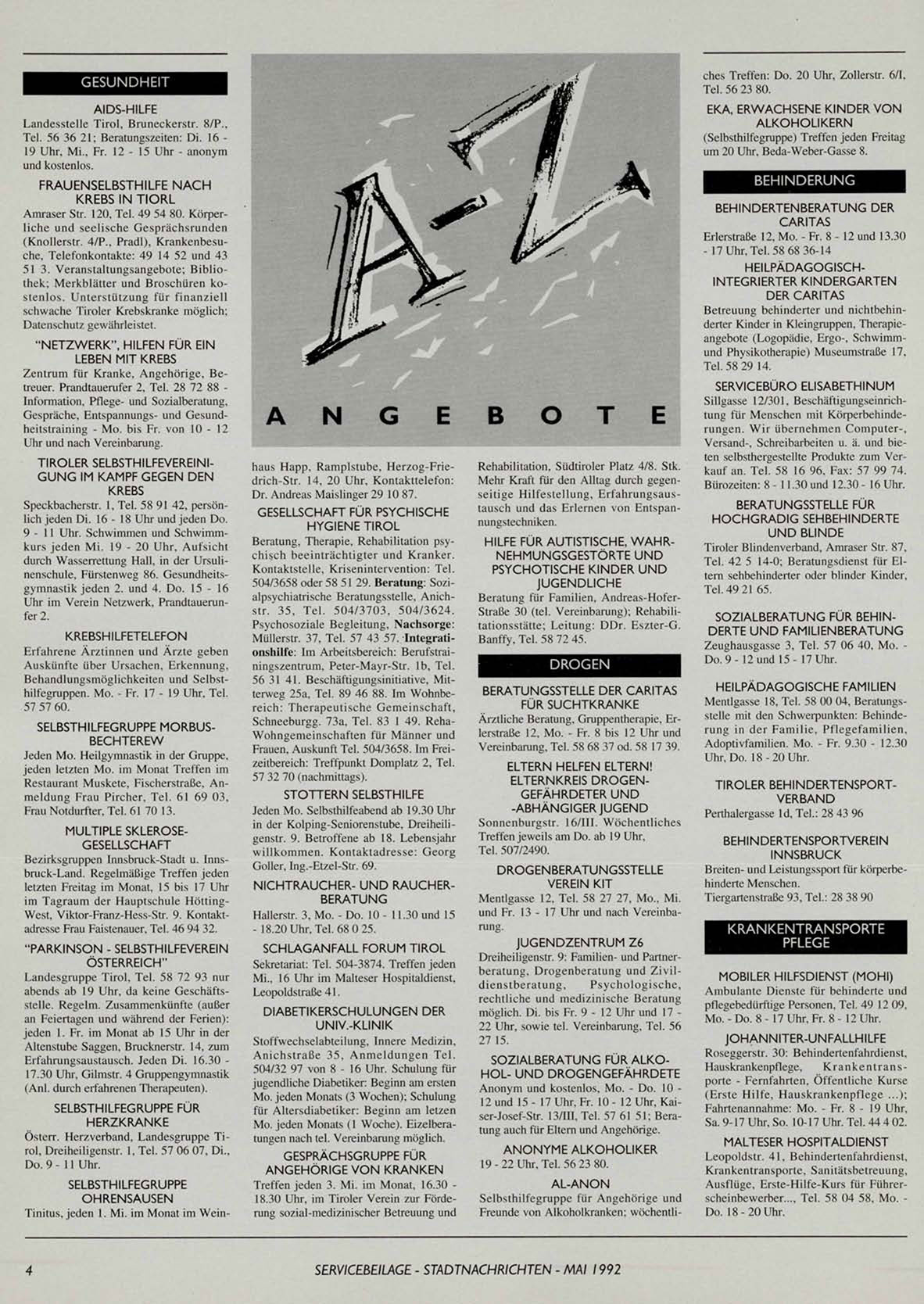 504/3658 oder 58 51 29. Beratung: Sozialpsychiatrische Beratungsstelle, Anichstr. 3 5 , Tel. 5 0 4 / 3 7 0 3 , 504/3624.