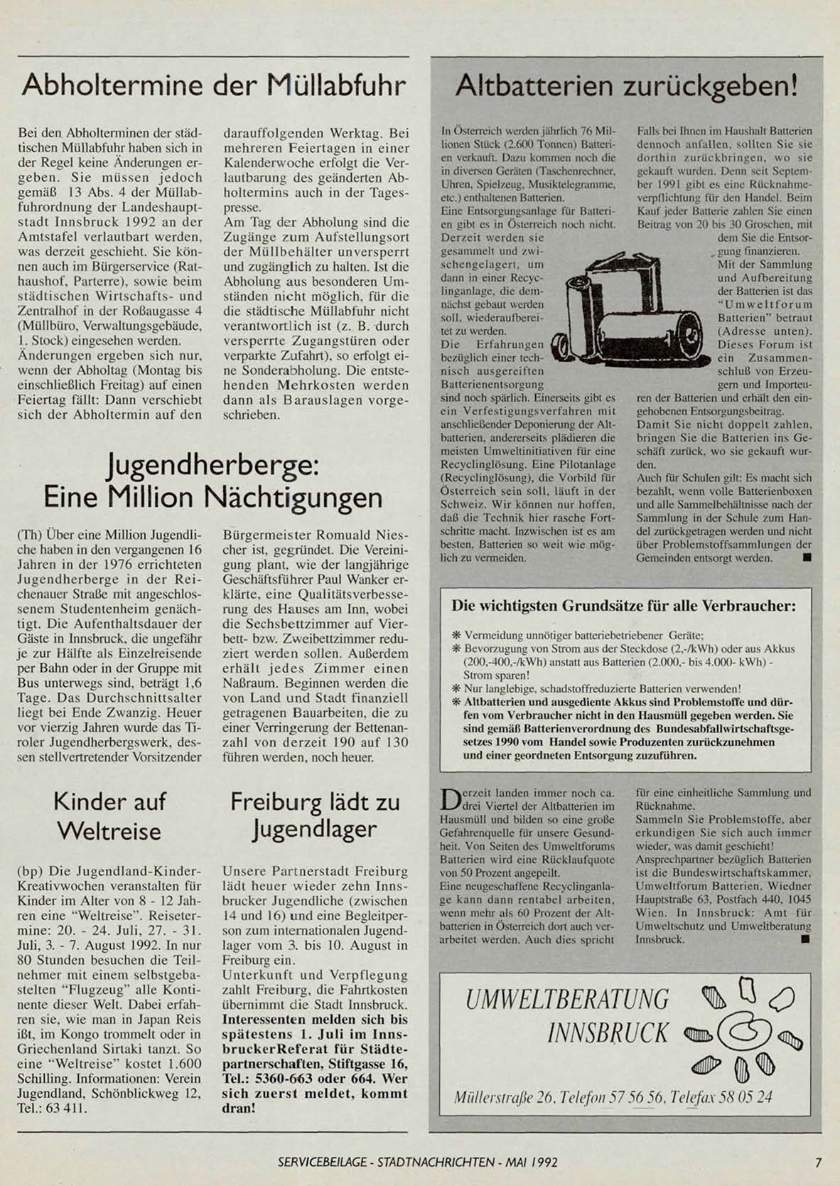 SERVICEBEILAGE - STADTNACHRICHTEN - MAI 1992