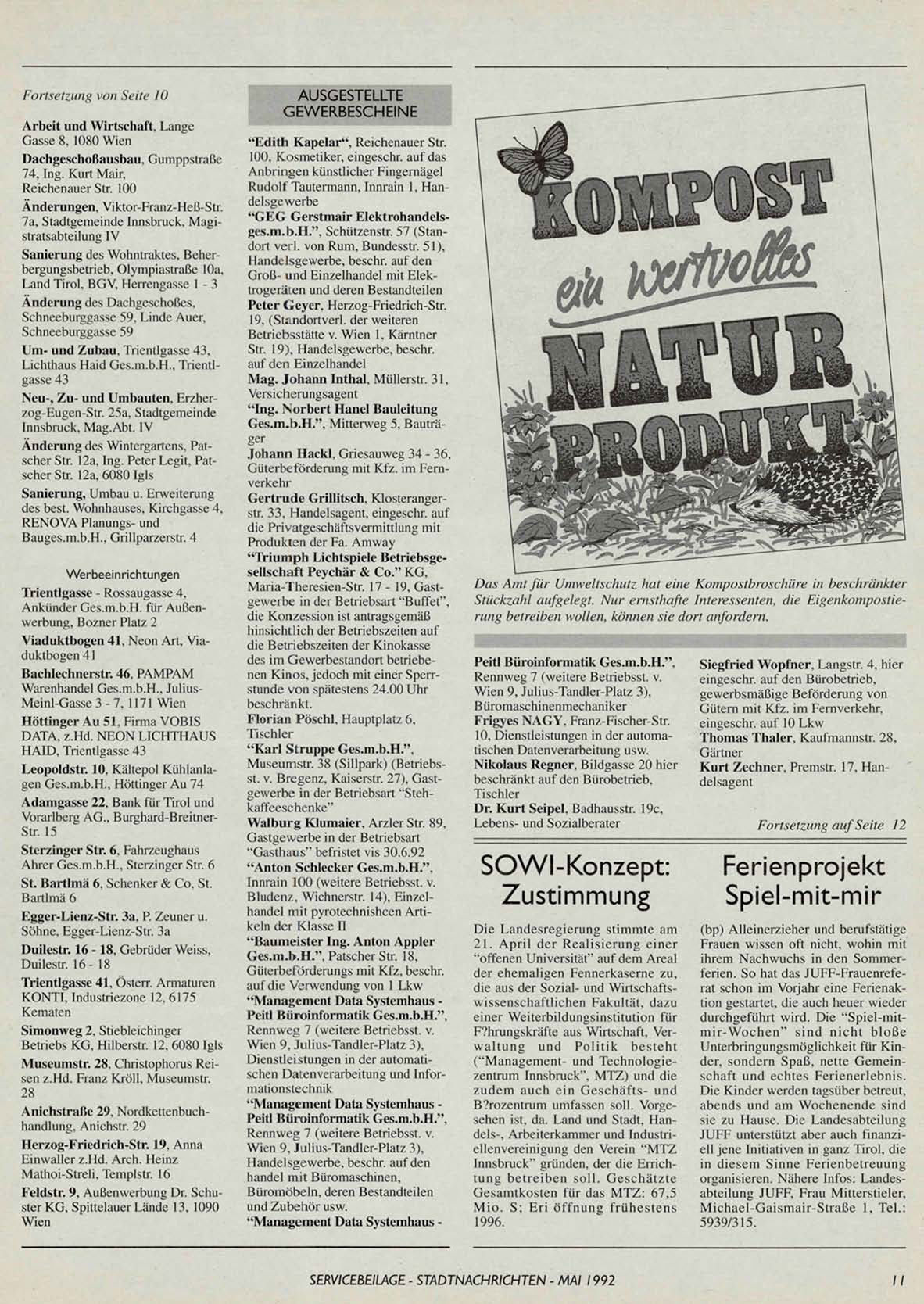 SERVICEBEILAGE - STADTNACHRICHTEN - MAI 1992