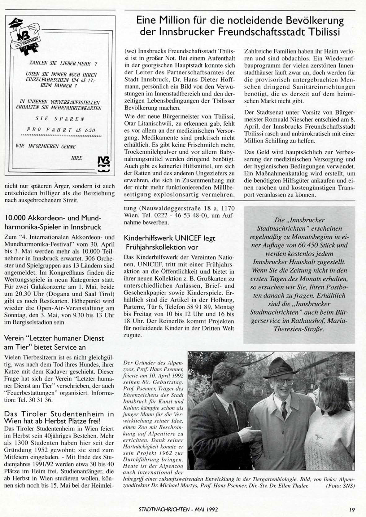 (we) Innsbrucks Freundschaftsstadt Tbilissi ist in großer Not. Bei einem Aufenthalt