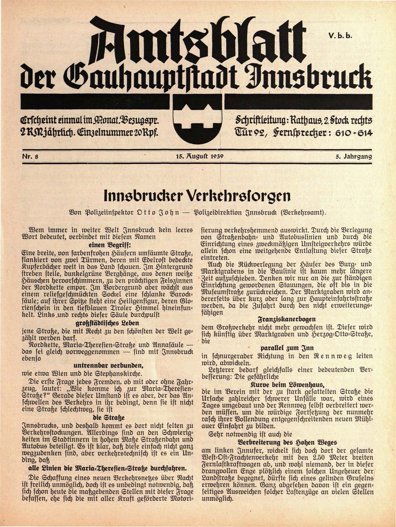 Von Polizeiinspektor O t t o J o h n — Polizeidirektion Innsbruck (Verkehrsamt).