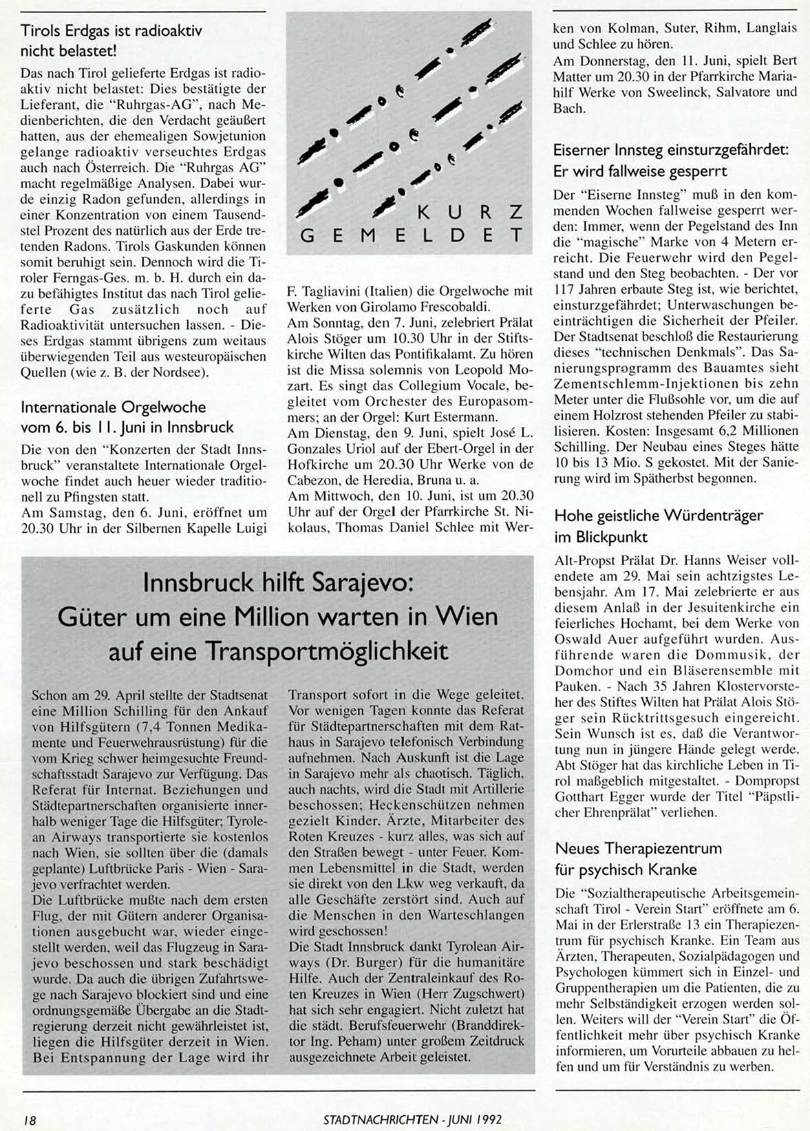 Die Stadt Innsbruck dankt Tyrolean Airways (Dr. Burger) für die humanitäre