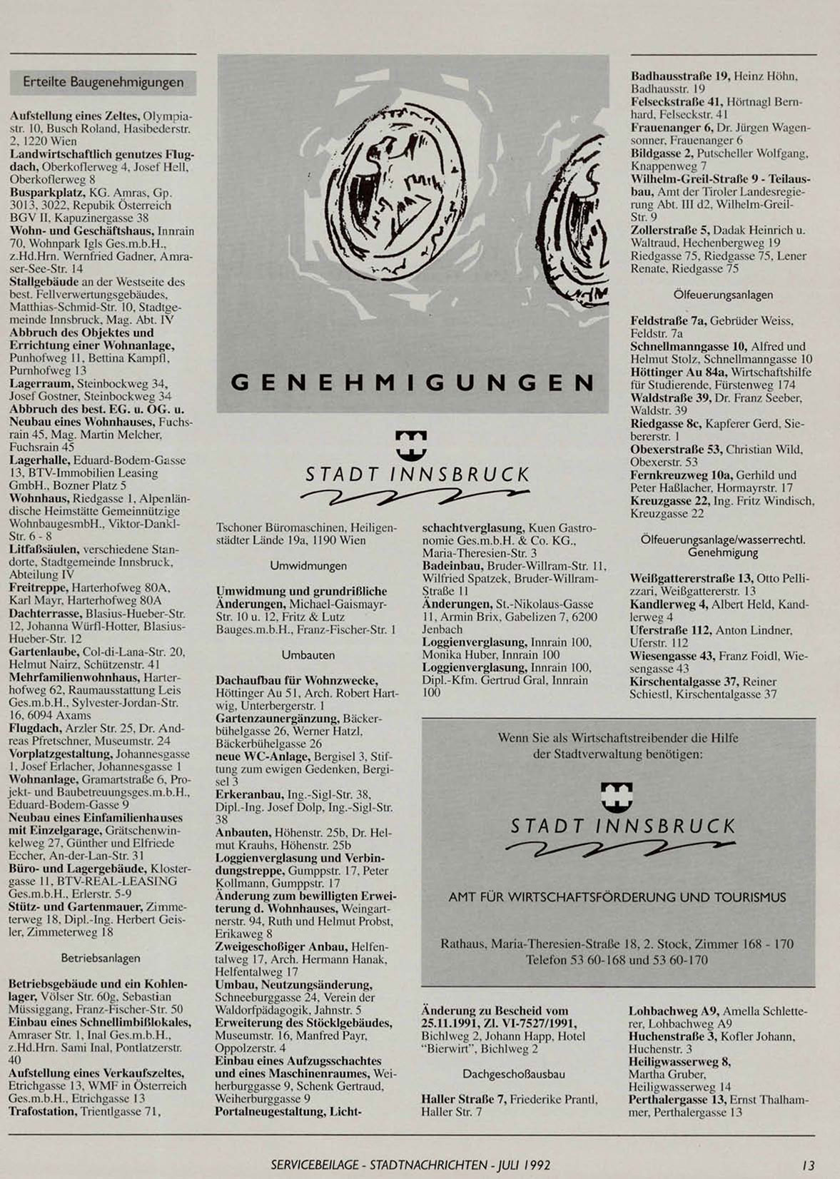SERVICEBEILAGE - STADTNACH RI CHTEN -JULI 1992