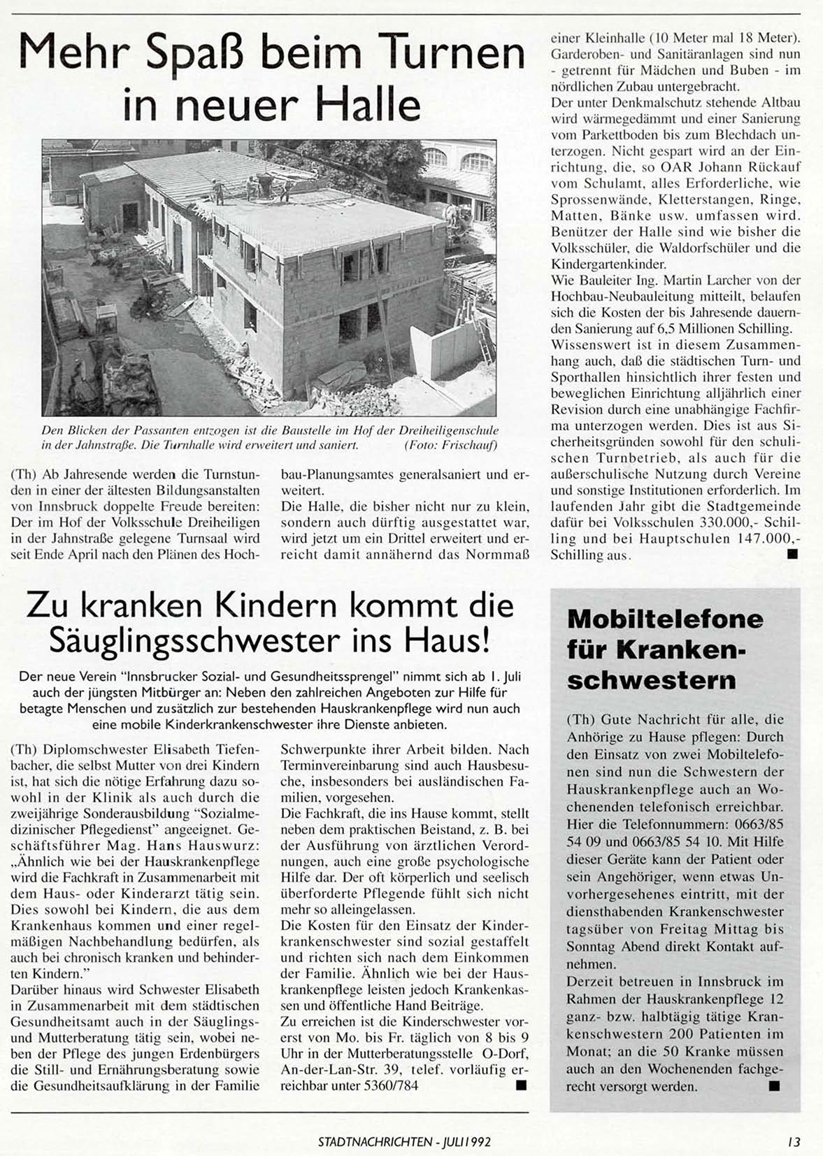 Der neue Verein "Innsbrucker Sozial- und Gesundheitssprengel" nimmt sich ab I.Juli