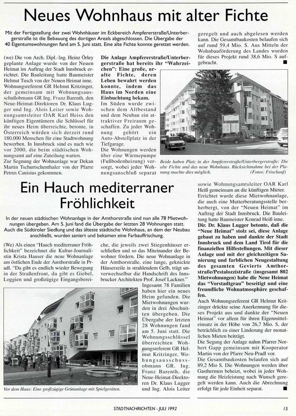 Heimat im Auftrag der Stadt Innsbruck errichtet. Die Bauleitung hatte Baumeister
