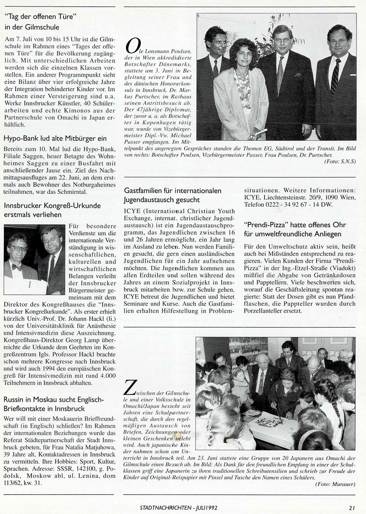 wird. Auch japanische Kinder nahmen schon am Unterricht in Innsbruck teil. Am 23. Juni stattete eine Gruppe von 20 Japanern aus Omachi der