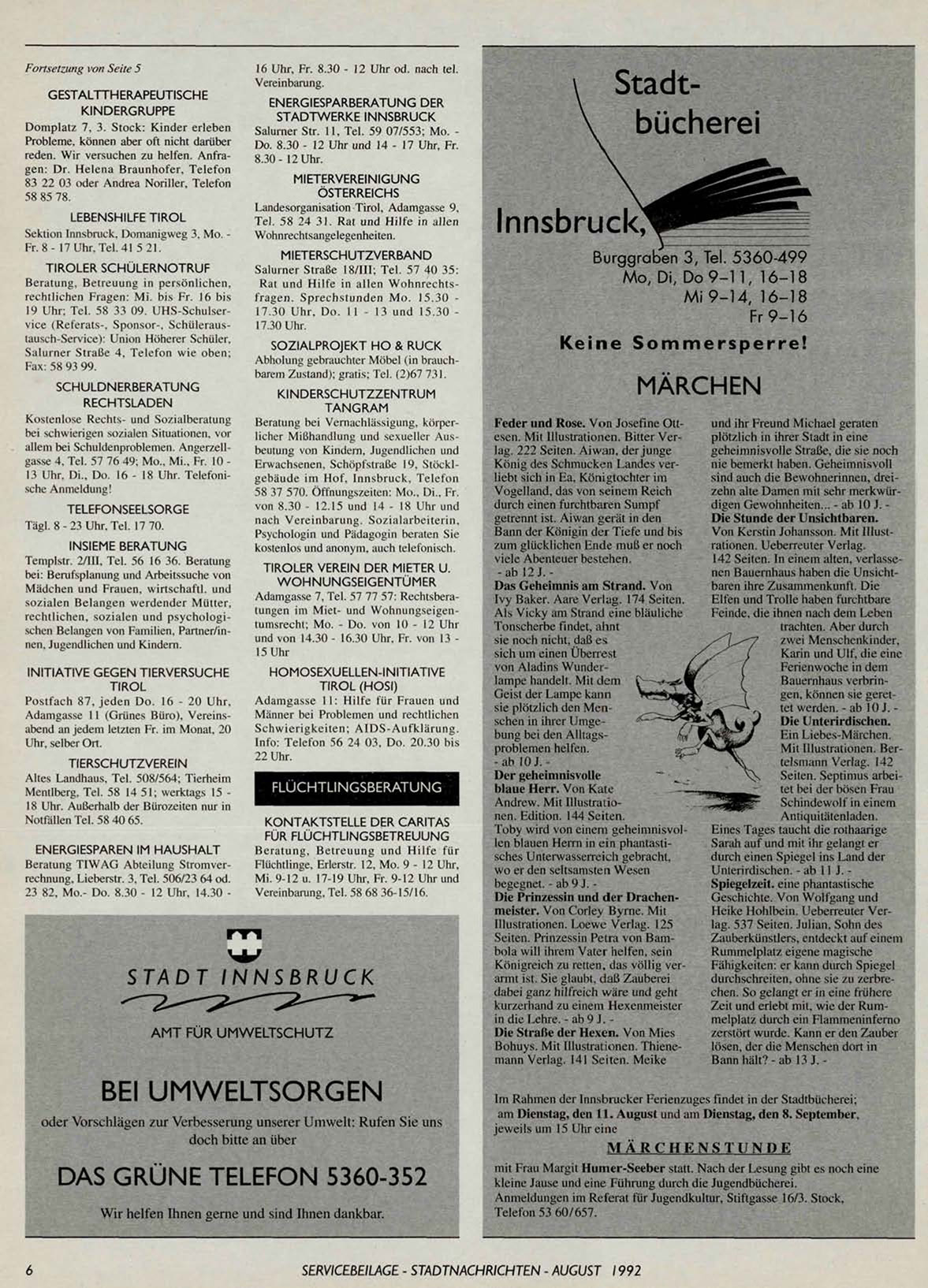 Mentlberg, Tel. 58 14 51; werktags 15 18 Uhr. Außerhalb der Bürozeiten nur in