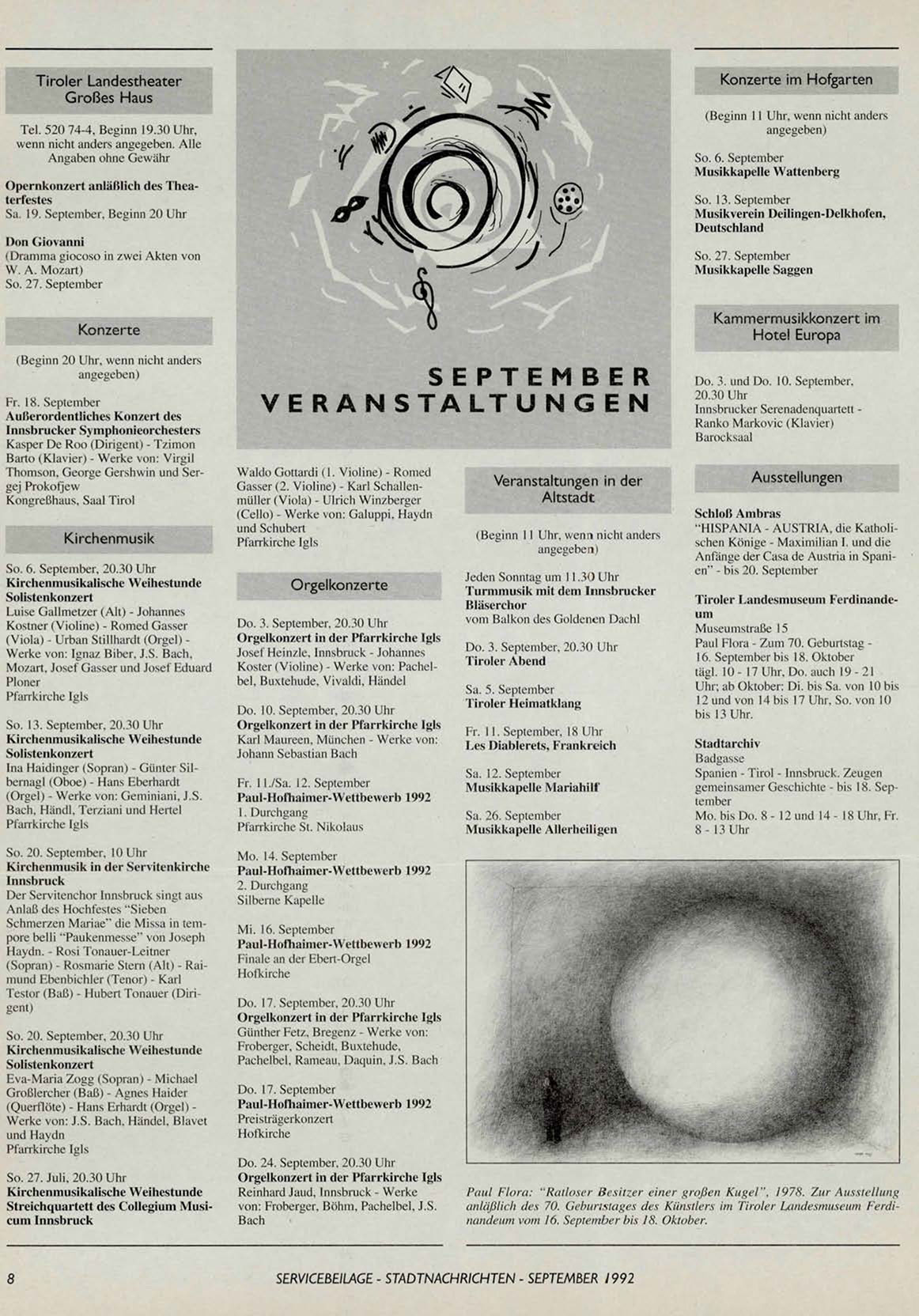 SERVICEBEILAGE - STADTNACHRICHTEN - SEPTEMBER 1992