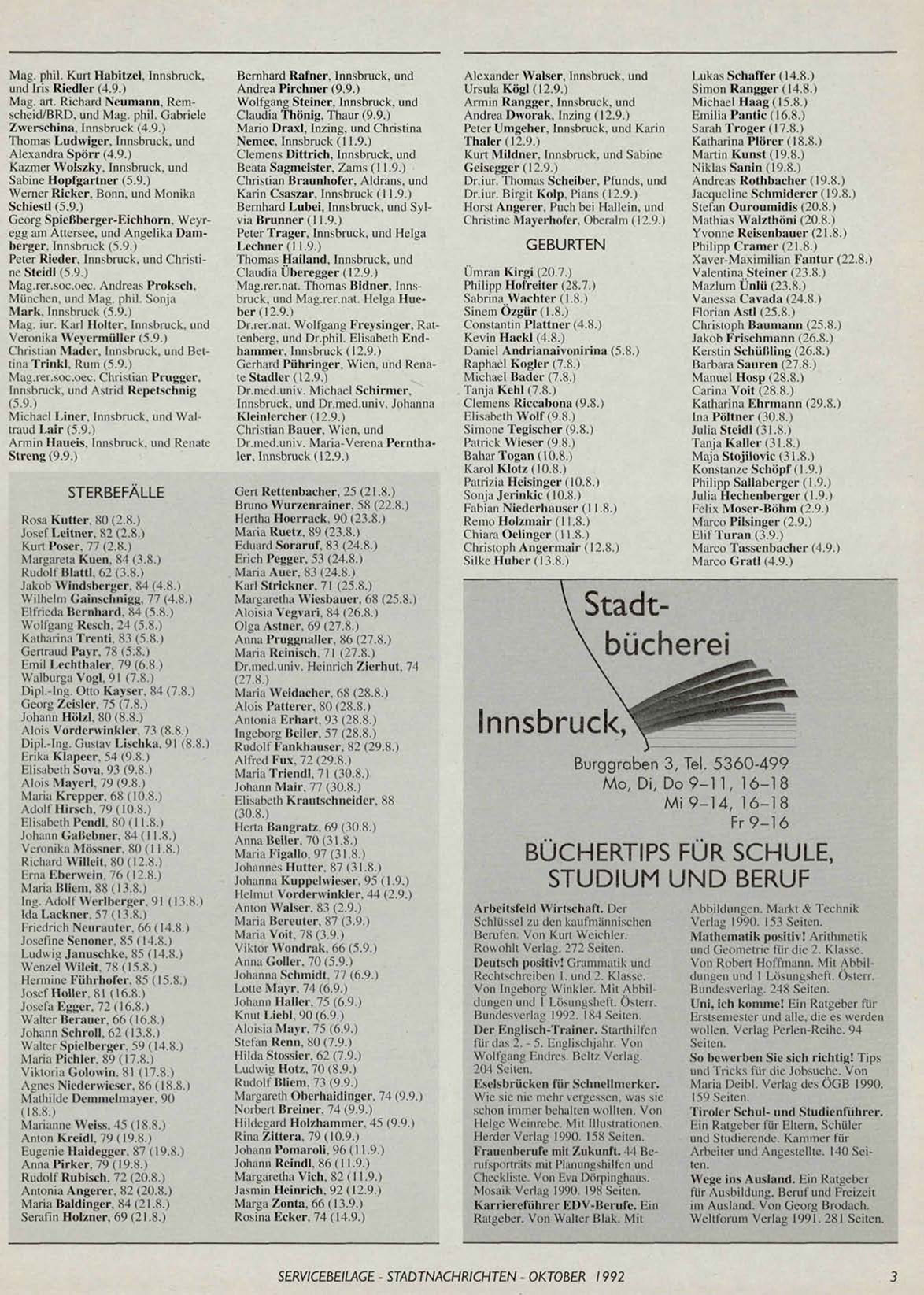 SERVICEBEILAGE - STADTNACHRICHTEN - OKTOBER 1992