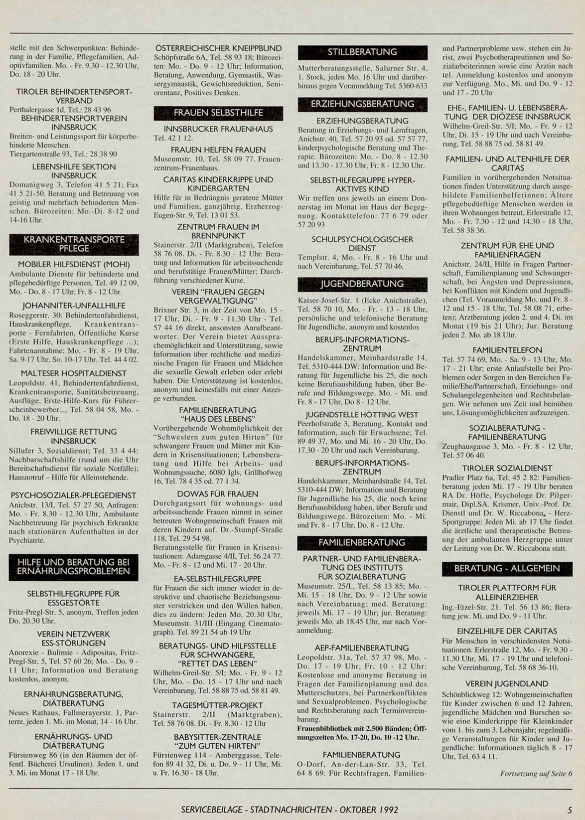 SERVICEBEILAGE - STADTNACH RI CHTEN - OKTOBER 1992