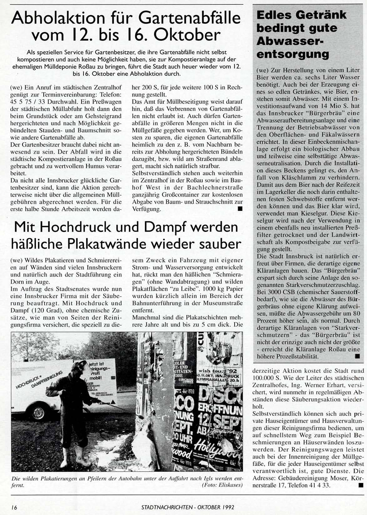 Adresse: Gebäudereinigung Moser, KörDie wilden Plakatierungen an Pfeilern der Autobahn unter der Auffahrt nach Igls werden ent•