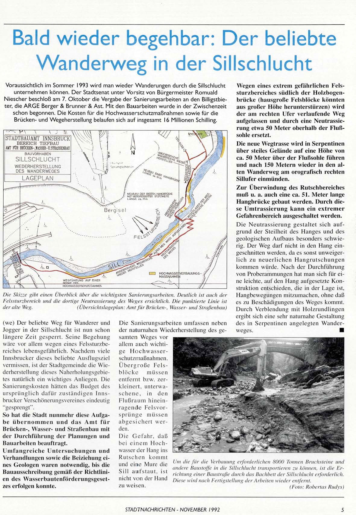 Voraussichtlich im Sommer 1993 w i r d man wieder Wanderungen durch die Sillschlucht